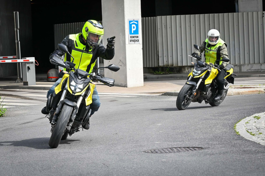 Kljub letu dni vozniške prakse je preskok iz 125-kubičnega motocikla z 11-kilovatnim enovaljnim motorjem na neprimerljivo zmogljivejšo 750-kubično hondo CB 750 horne, ki jo poganja vrstni dvovaljnik s 67,5 kW moči, zelo velik. Gre za zelo zmogljiv, a odlično obvladljiv motocikel. Zato so vse uvodne ure vožnje odpeljane na poligonu izjemno pomembne. Z Manuelom ni bilo nič prepuščeno naključju in šele, ko sem dodobra osvojil ter izpilil manever tehnike vožnje, ki z zaviranjem v sili, izogibanjem oviri in celostnim obvladovanjem motocikla pri nizkih ter višjih hitrostih in brezhibno odpeljal osmico, sva se podala na cesto. V dobrem mesecu dni sem odpeljal vseh 20 ur predpisanih vaj, zelo pa so mi koristile predvsem ure, ko me je Manuel spremljal kot motorist na svojem motociklu. Sploh, ko sva se na relacijski vožnji odpeljala na Vransko v AMZS center varne vožnje in izkušnje s prometa na poligonu reševala z vajami obvladovanja motorja. Pravilno zaviranje, pomen pogleda, tehnika potiskanja krmila in uporaba zavore zadaj so veščine, ki rešujejo življenja.