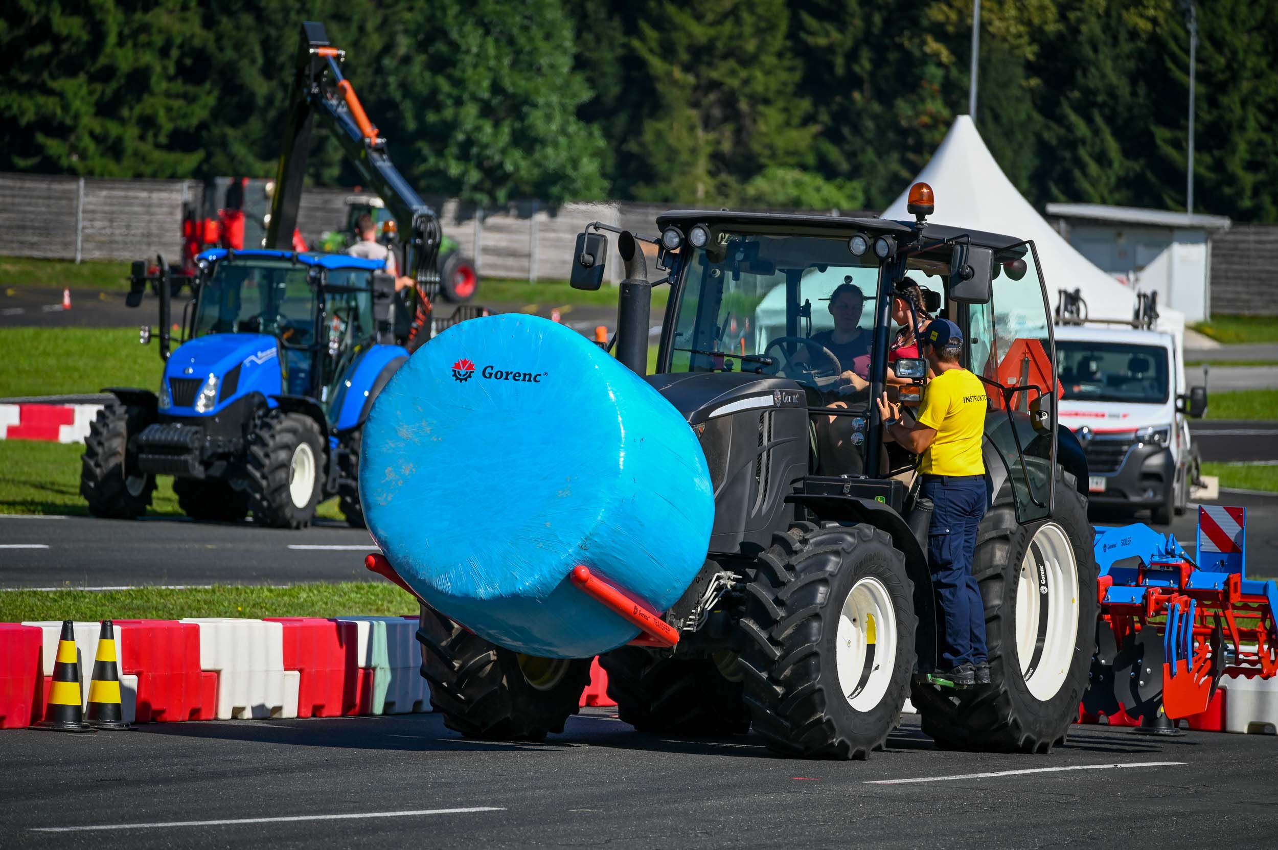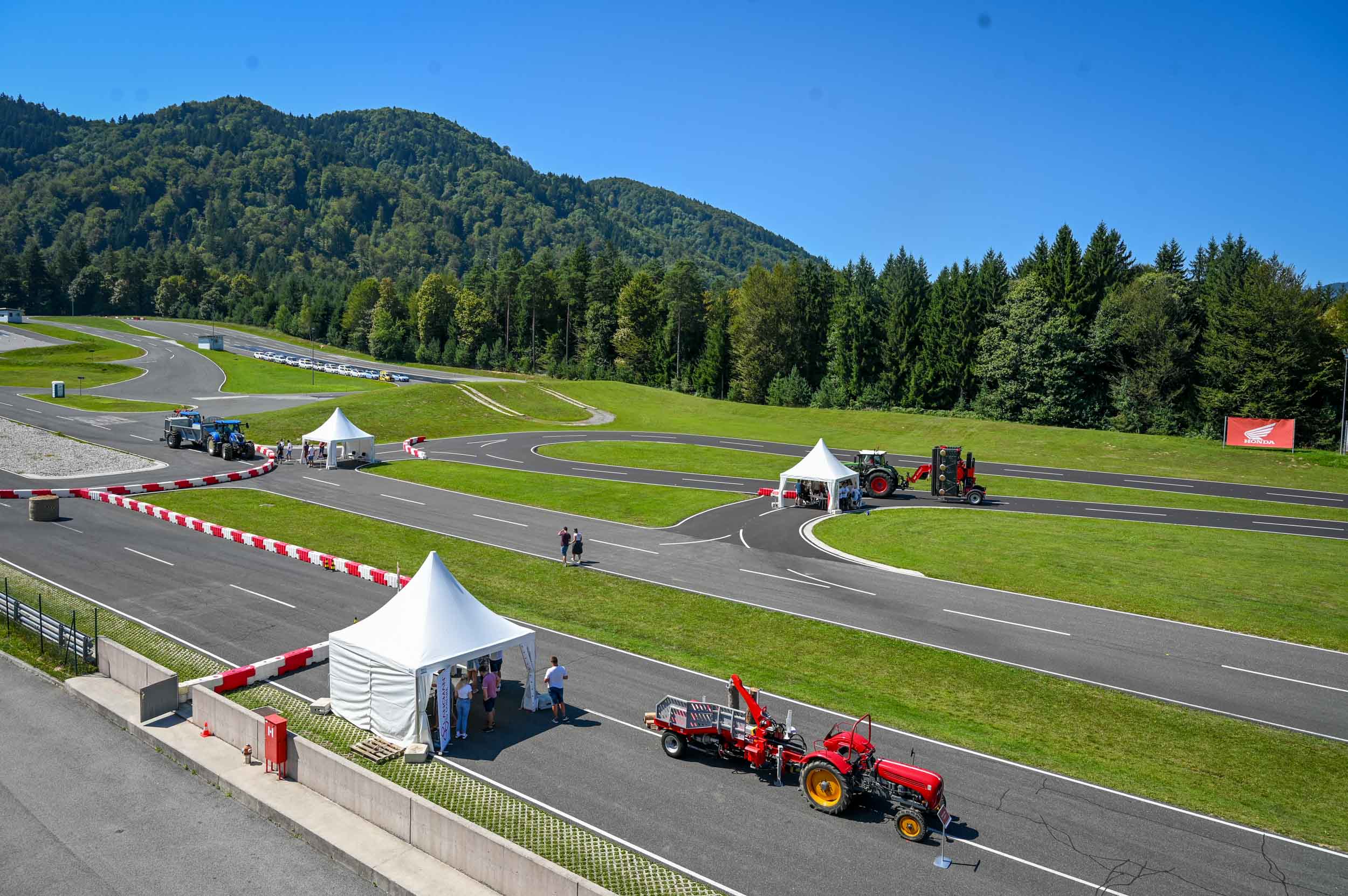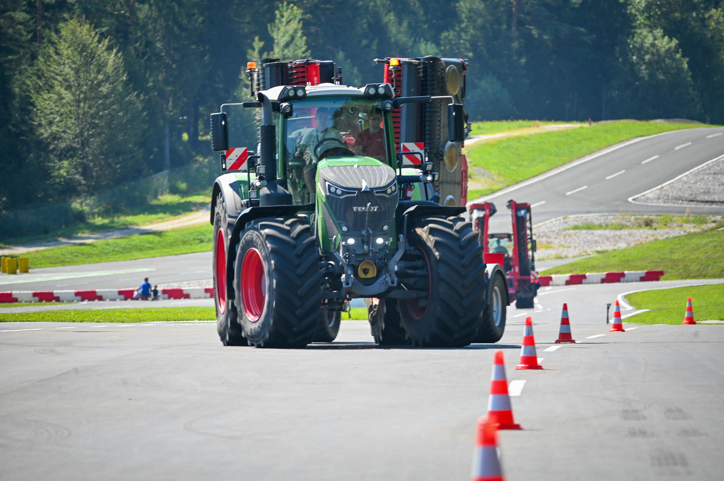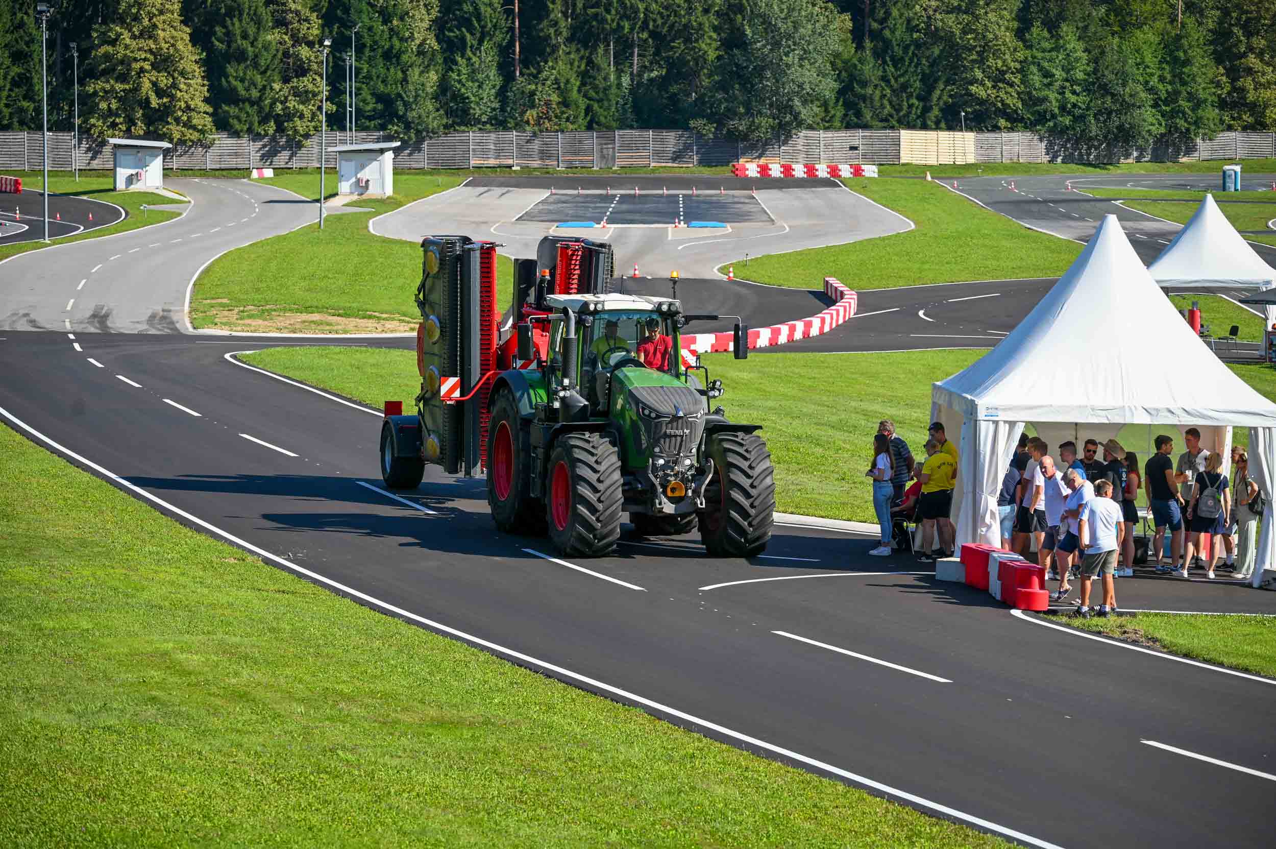 Na poligonu AMZS centra varne vožnje na Vranskem so inštruktorji za vse prijavljene obiskovalce pripravili zanimive preizkušnje, v katerih so pod nadzorom izkušenih inštruktorjev lahko preskusili svojo natančnost pri obvladovanju traktorja s širokimi priključki med tehničnimi ovirami. Preskusili so lahko tudi najsodobnejše sisteme za vleko različno velikih priklopnih vozil s poudarkom na varnem zaviranju in vodenju priklopnika pri vožnji po strmini. Pri tehniki zaviranja so še posebno pozornost namenili pravilnim nastavitvam priključkov in uporabi motorne zavore. Pri tem je vse voznike na pomen nadzora mrtvih kotov vseskozi s svojo prisotnostjo opozarjal inštruktor v vlogi motorista na 125-kubičnem skuterju.