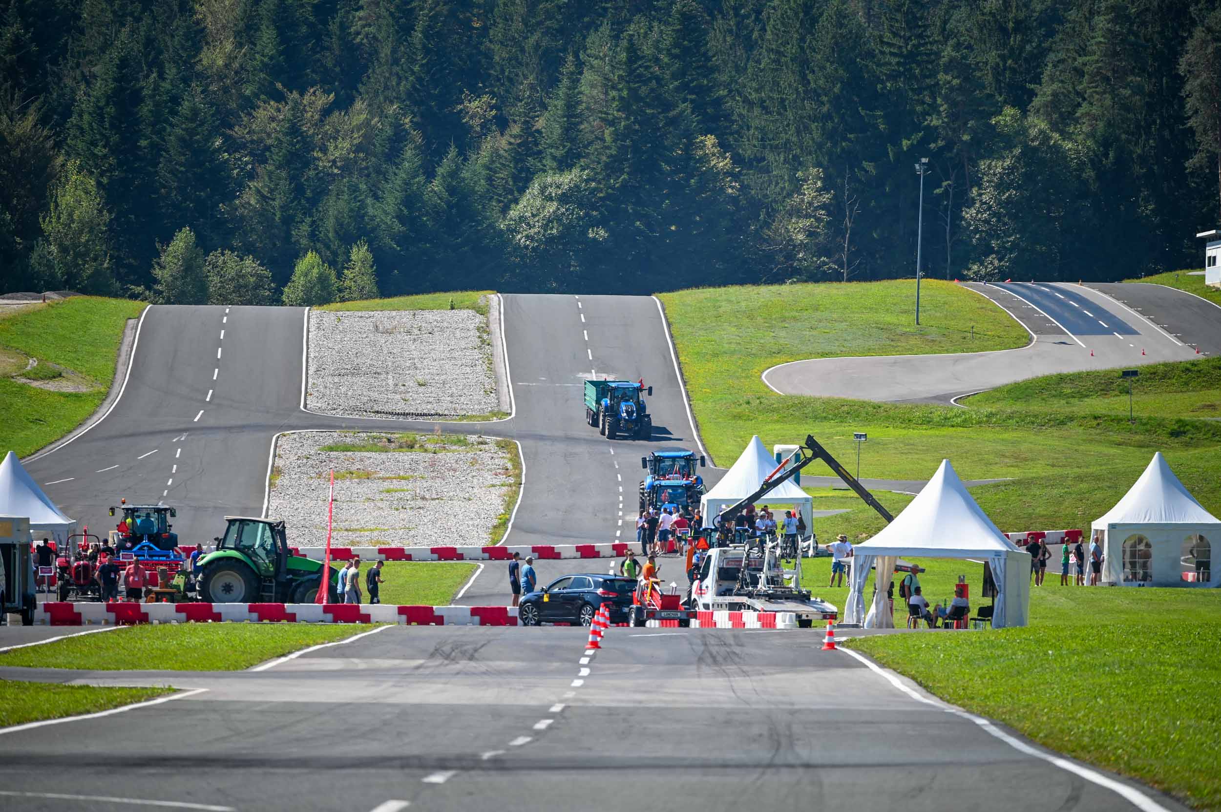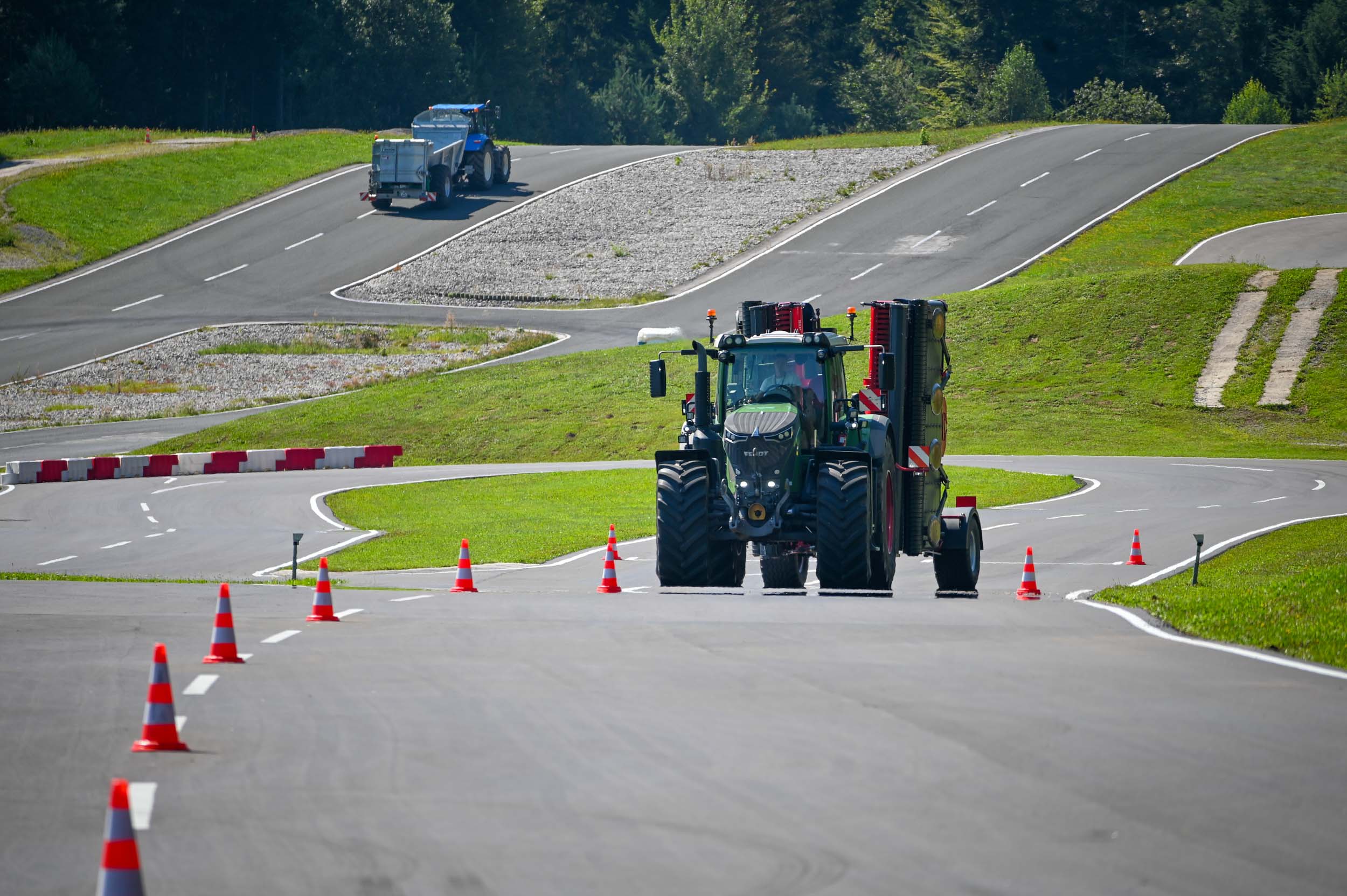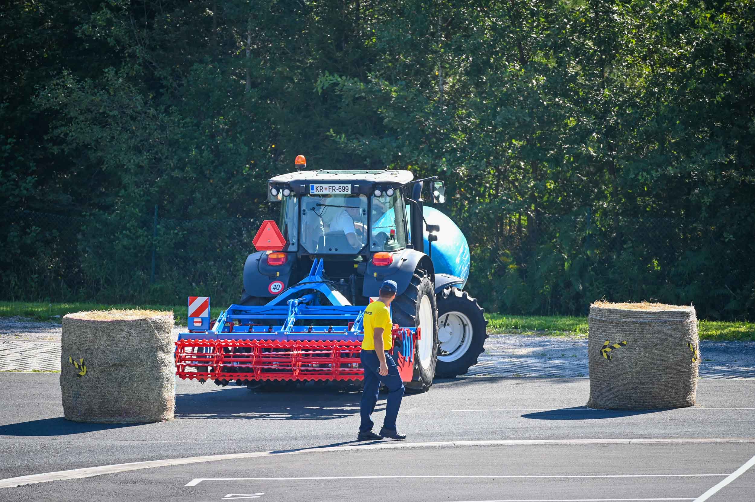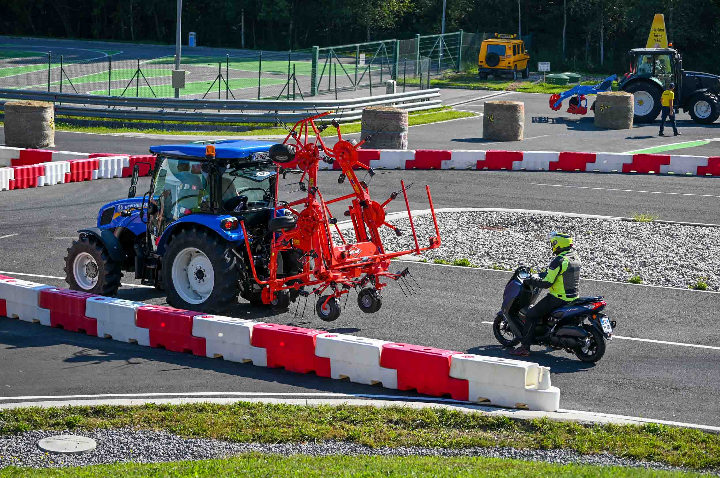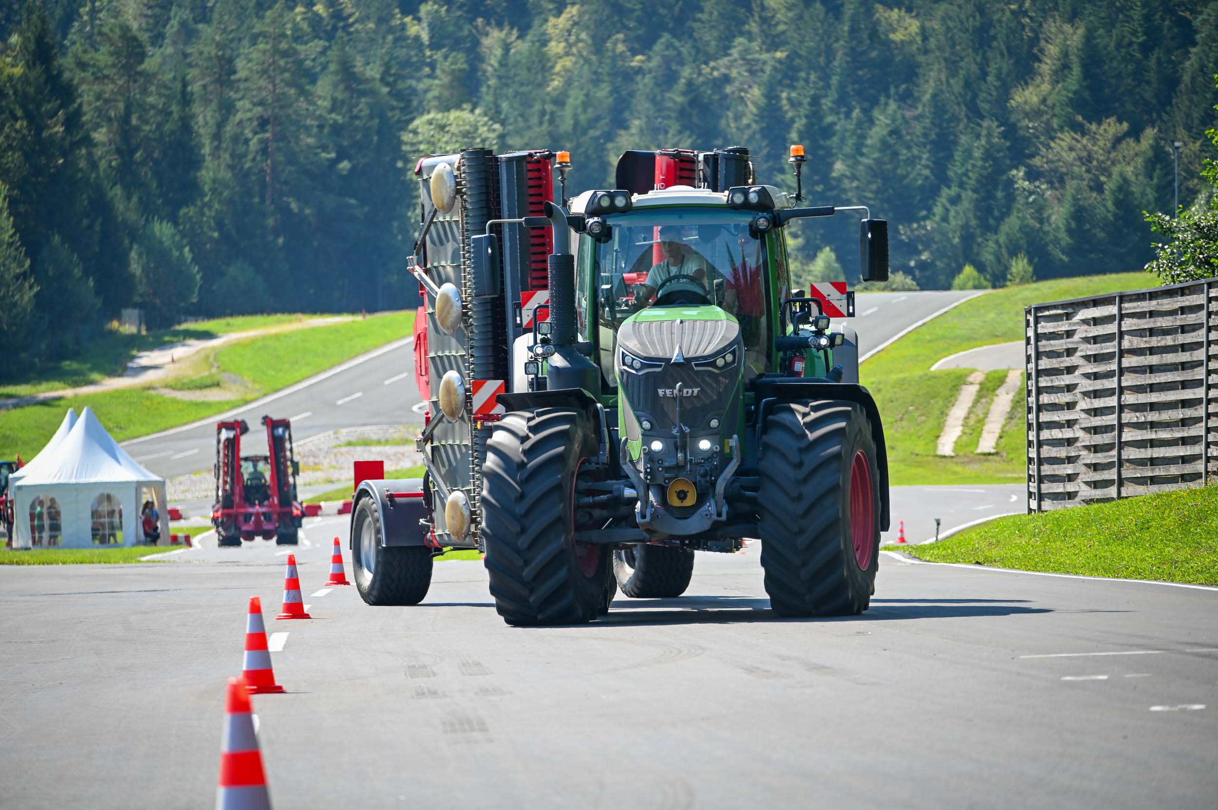 Na poligonu AMZS centra varne vožnje na Vranskem so inštruktorji za vse prijavljene obiskovalce pripravili zanimive preizkušnje, v katerih so pod nadzorom izkušenih inštruktorjev lahko preskusili svojo natančnost pri obvladovanju traktorja s širokimi priključki med tehničnimi ovirami. Preskusili so lahko tudi najsodobnejše sisteme za vleko različno velikih priklopnih vozil s poudarkom na varnem zaviranju in vodenju priklopnika pri vožnji po strmini. Pri tehniki zaviranja so še posebno pozornost namenili pravilnim nastavitvam priključkov in uporabi motorne zavore. Pri tem je vse voznike na pomen nadzora mrtvih kotov vseskozi s svojo prisotnostjo opozarjal inštruktor v vlogi motorista na 125-kubičnem skuterju.