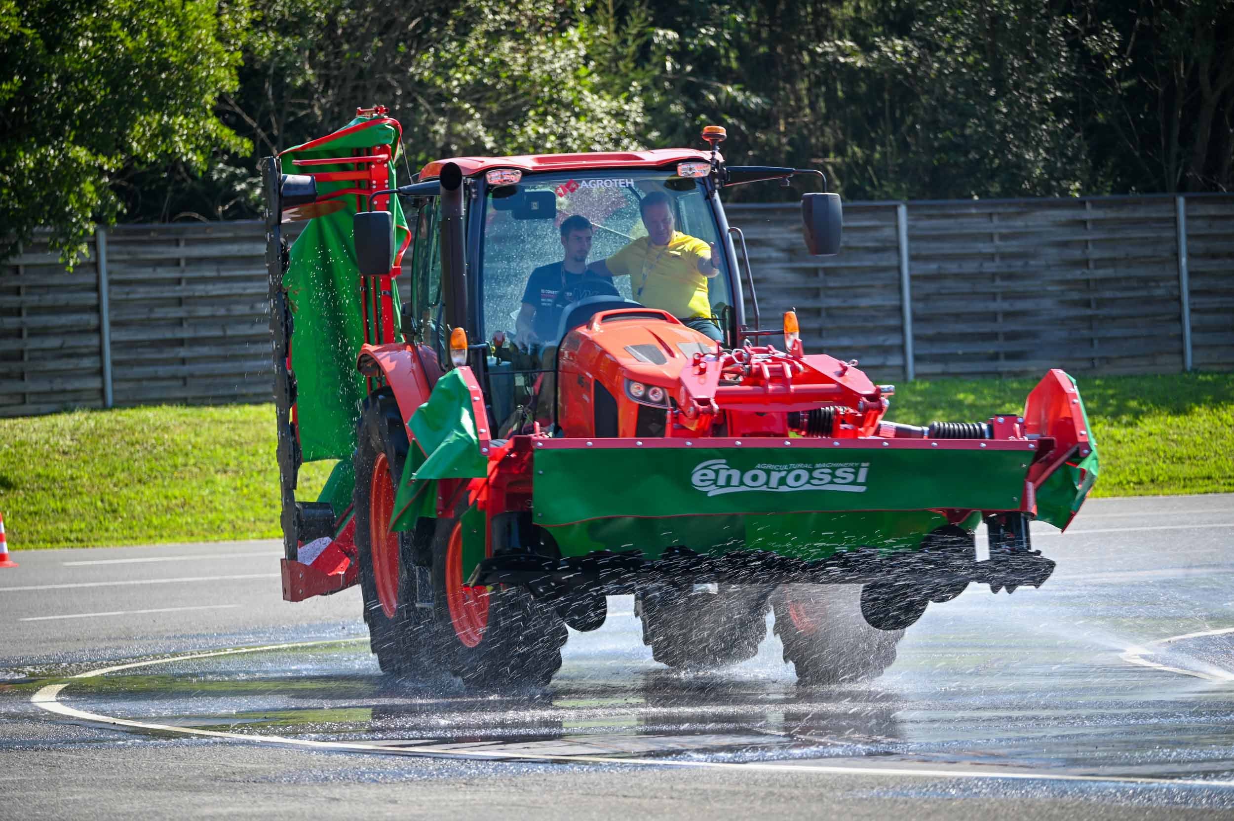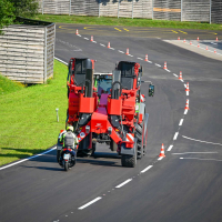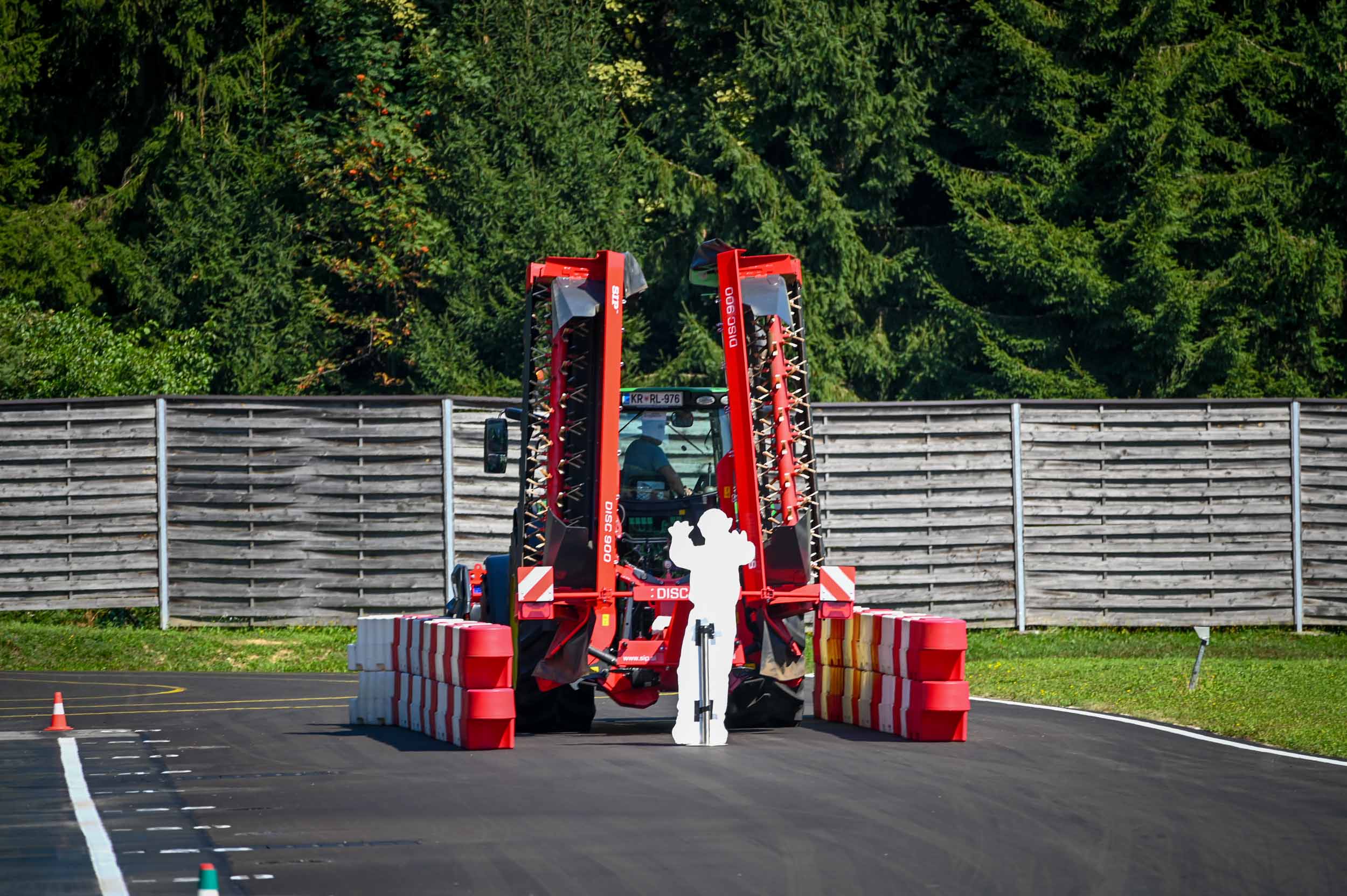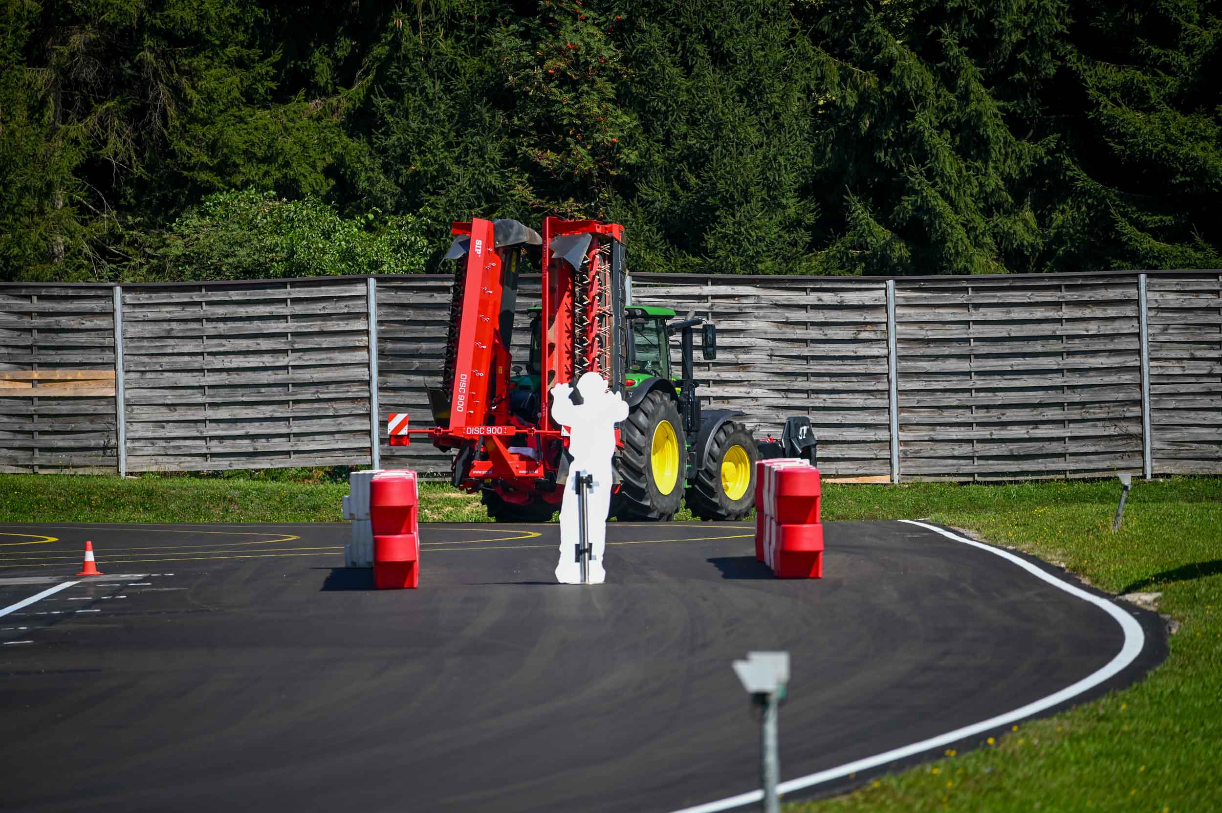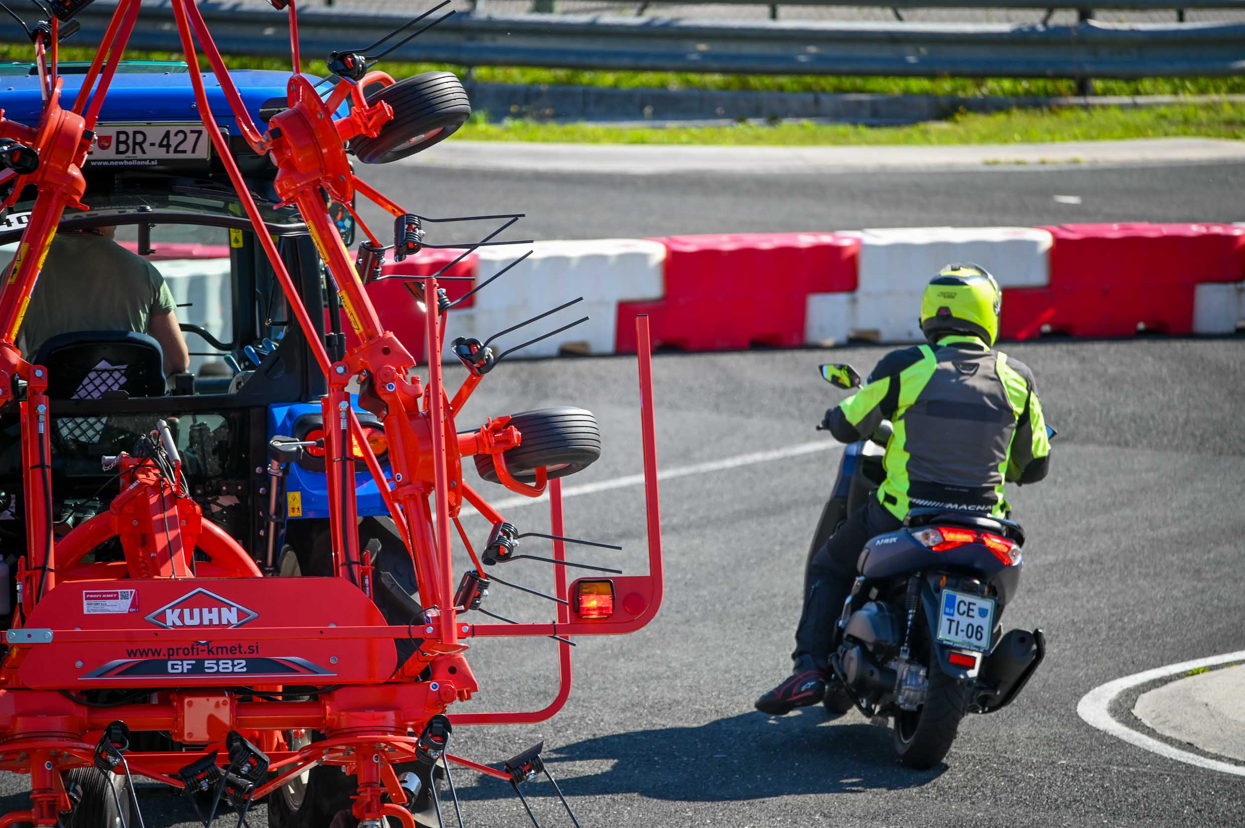 Na poligonu AMZS centra varne vožnje na Vranskem so inštruktorji za vse prijavljene obiskovalce pripravili zanimive preizkušnje, v katerih so pod nadzorom izkušenih inštruktorjev lahko preskusili svojo natančnost pri obvladovanju traktorja s širokimi priključki med tehničnimi ovirami. Preskusili so lahko tudi najsodobnejše sisteme za vleko različno velikih priklopnih vozil s poudarkom na varnem zaviranju in vodenju priklopnika pri vožnji po strmini. Pri tehniki zaviranja so še posebno pozornost namenili pravilnim nastavitvam priključkov in uporabi motorne zavore. Pri tem je vse voznike na pomen nadzora mrtvih kotov vseskozi s svojo prisotnostjo opozarjal inštruktor v vlogi motorista na 125-kubičnem skuterju.