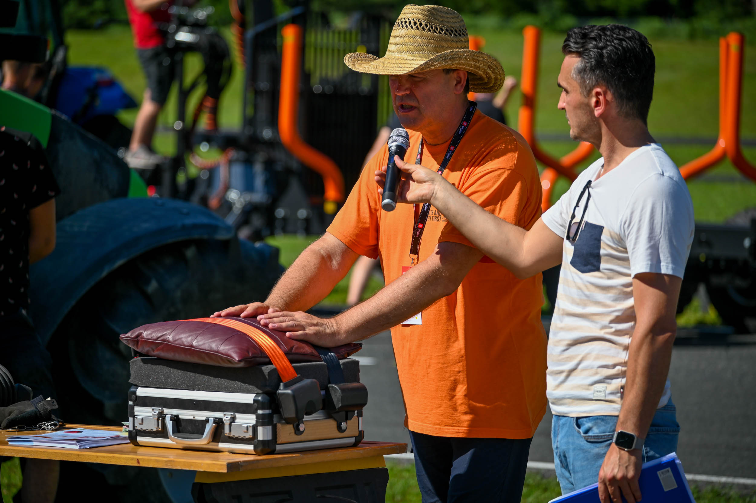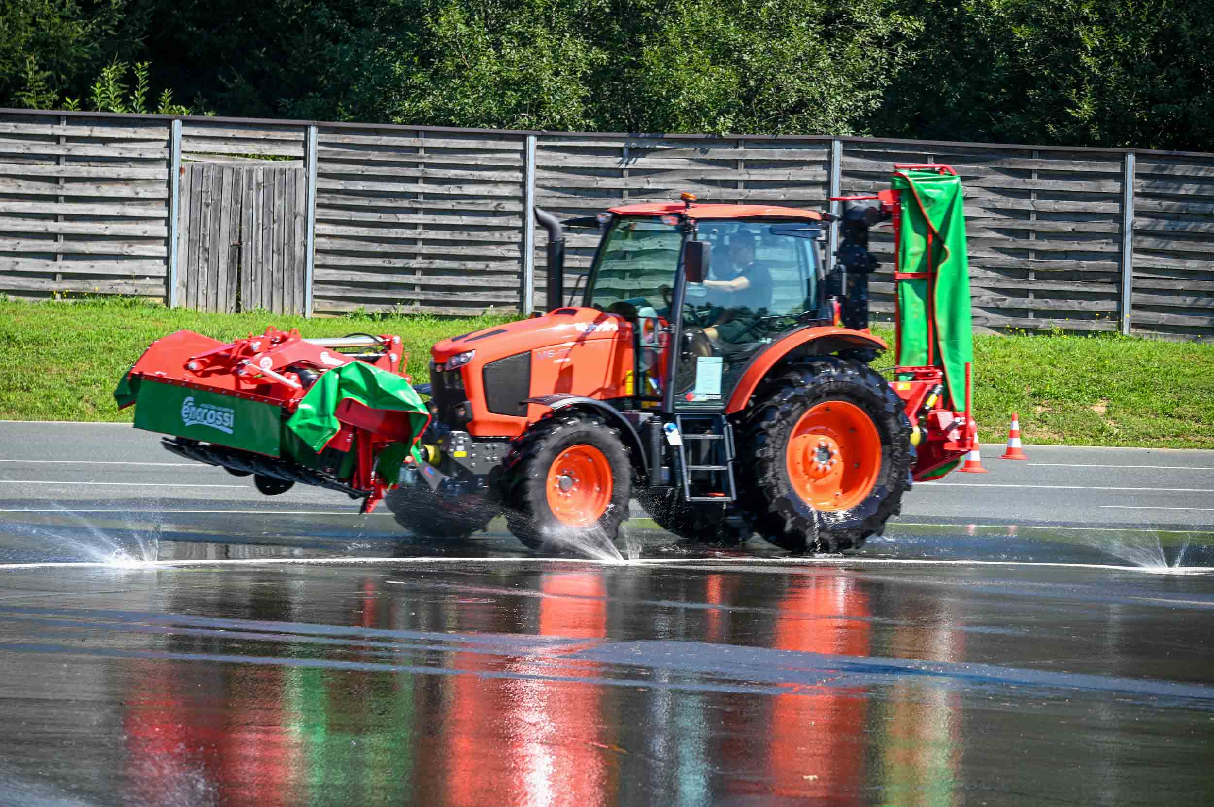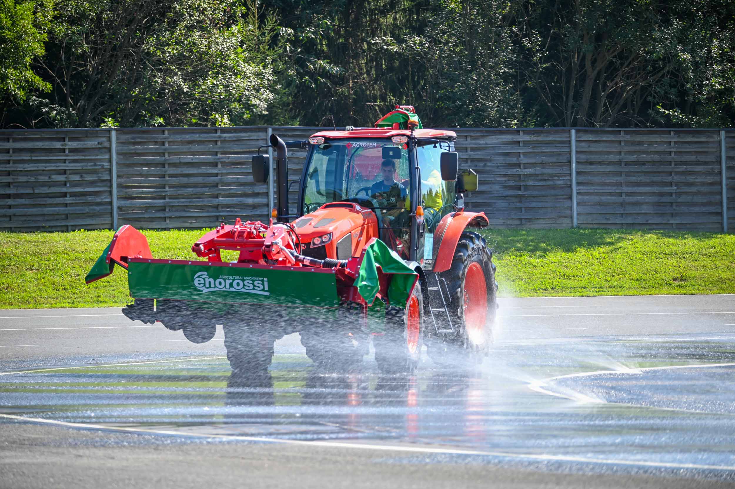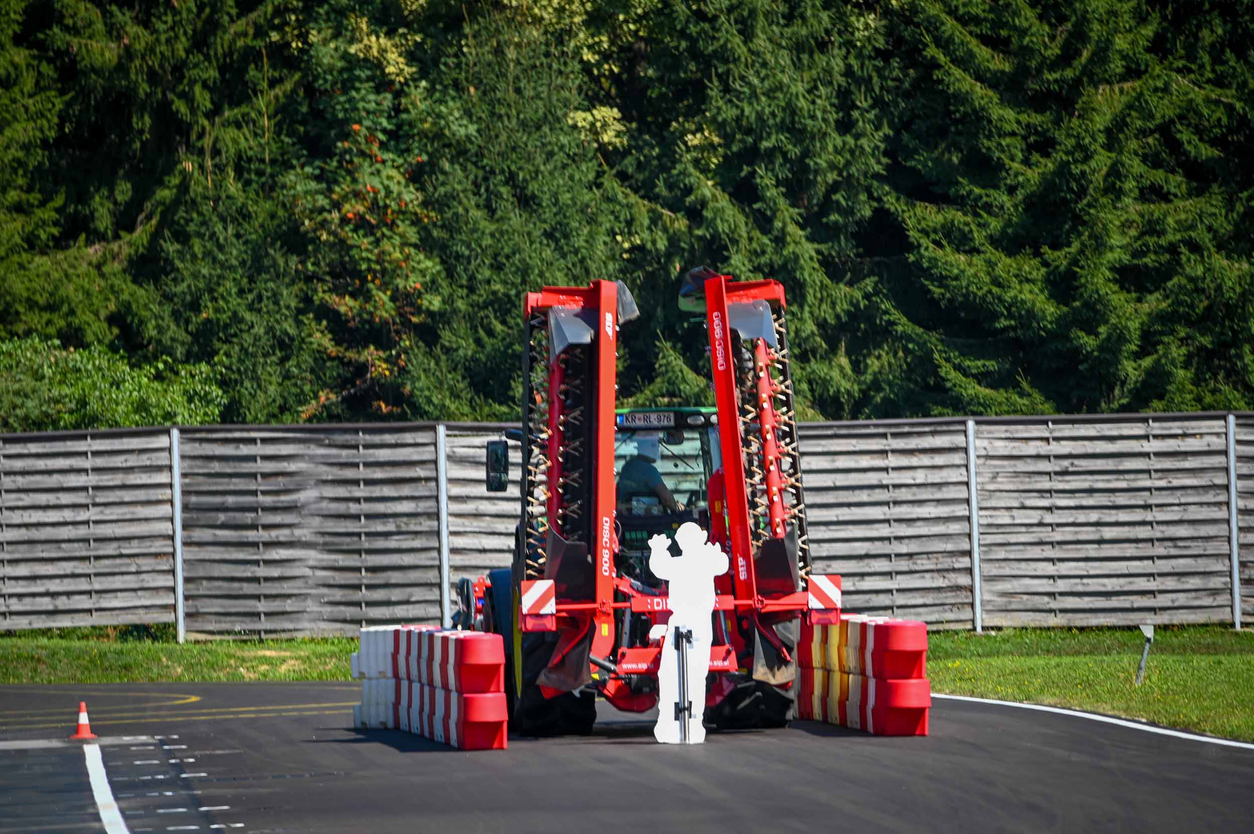 Na poligonu AMZS centra varne vožnje na Vranskem so inštruktorji za vse prijavljene obiskovalce pripravili zanimive preizkušnje, v katerih so pod nadzorom izkušenih inštruktorjev lahko preskusili svojo natančnost pri obvladovanju traktorja s širokimi priključki med tehničnimi ovirami. Preskusili so lahko tudi najsodobnejše sisteme za vleko različno velikih priklopnih vozil s poudarkom na varnem zaviranju in vodenju priklopnika pri vožnji po strmini. Pri tehniki zaviranja so še posebno pozornost namenili pravilnim nastavitvam priključkov in uporabi motorne zavore. Pri tem je vse voznike na pomen nadzora mrtvih kotov vseskozi s svojo prisotnostjo opozarjal inštruktor v vlogi motorista na 125-kubičnem skuterju.