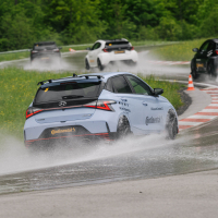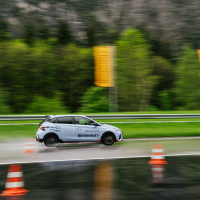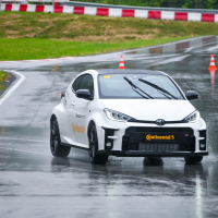 Tokrat pa smo se s Continentalovimi inženirji, ki so zadnji dve leti in pol razvijali ter testirali novo generacijo celoletne pnevmatike all season contact 2, srečali na alpskem poligonu Saalfelden avstrijskega avtomobilskega kluba ÖAMTC, kjer predvsem pozimi voznike učijo veščin zimske vožnje. V tem vozniškem centru med gorami smo imeli na voljo tudi razmeroma kratko (1230 m), a tehnično precej zahtevno stezo z veliko prevoji, kjer smo oprijem in vodljivost nove celoletne pnevmatike v dežju lahko preskusili na dveh športnih avtomobilih - hyundaiju i20 N s pogonom na prednji kolesi in toyoti yarisu GR s pogonom na vsa štiri kolesa. Tokratno prvo spoznavanje z novim profilom in zmesjo, ki naj bi zmogla opraviti z večino vozniških izzivov vseh letnih časov in nuditi ustrezno mero varnosti tako na razbeljenem poletnem asfaltu kot tudi na zasneženih oziroma poledenelih ovinkih, je bilo bolj vozniško doživetje kot pravi test. Je pa jasno, da so pri Continentalu očitno zelo zadovoljni in ponosni na svoj izdelek, ker so nam samozavestno ponudili športni avto na mokri stezi, “obut” v povsem serijske celoletne pnevmatike.