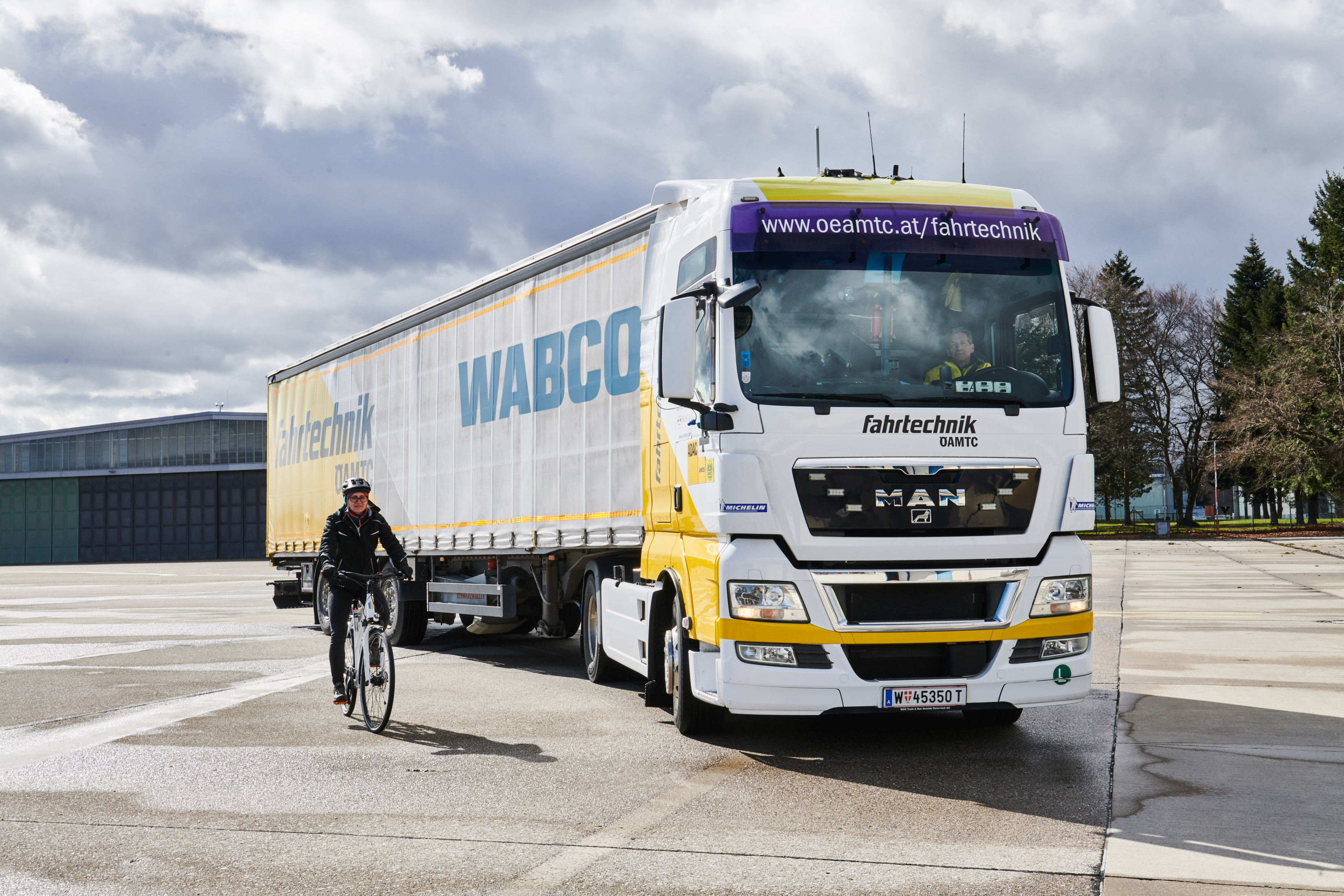 Za volanom tovornega vozila je še težje opaziti kolesarja ali pešca neposredno ob vozilu, še zlasti pri zavijanju desno: kljub velikim stranskim vzvratnim ogledalom je iz visoko postavljenega vozniškega sedeža tovornjaka nemogoče videti celotno dogajanje ob desnem boku tovornega vozila.