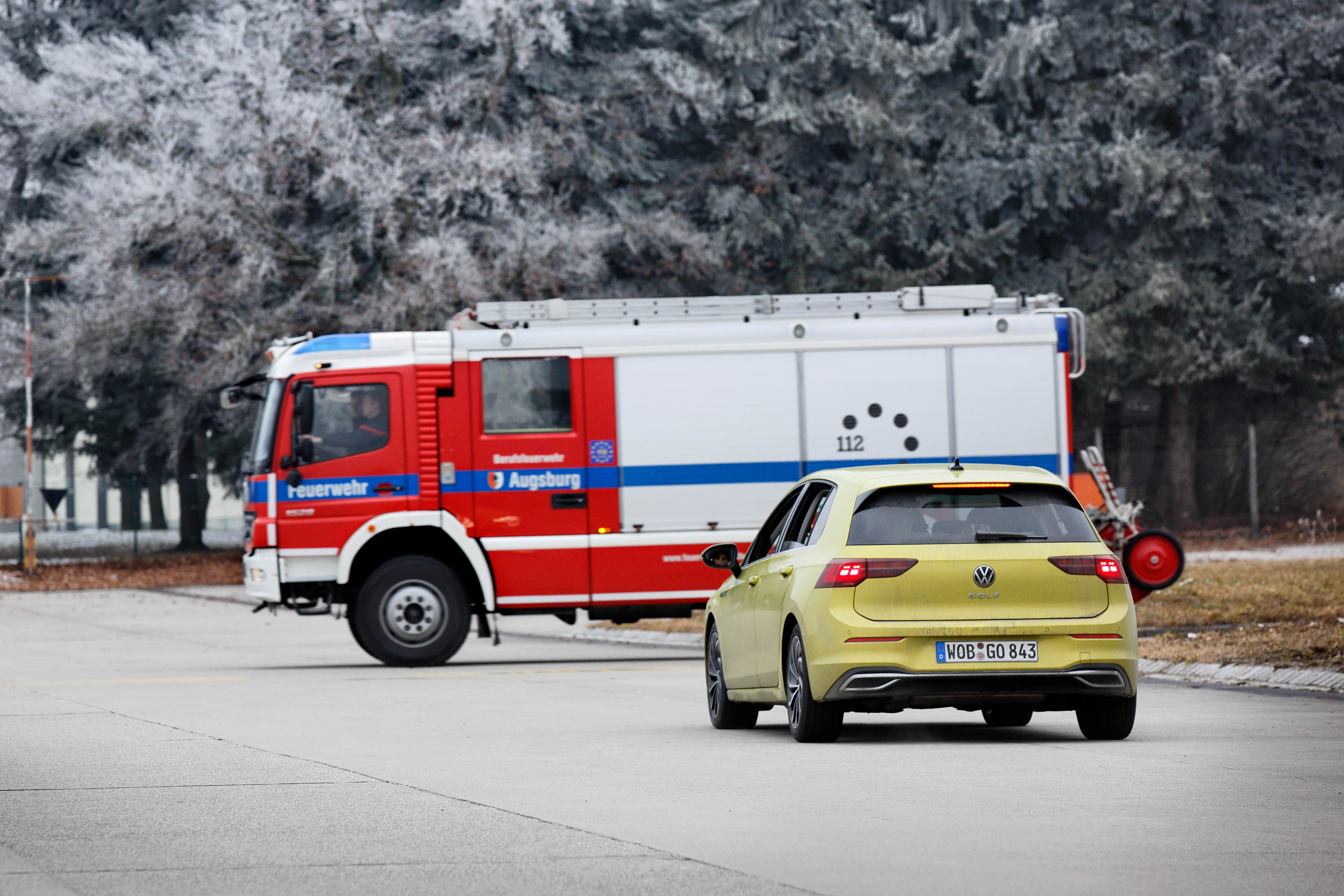 Z novim golfom smo zato zapeljali skozi nekaj prometnih scenarijev, pri katerih takšna tehnologija udeležencem v prometu lahko prepreči nesrečo - prav preprečitev nesreče oziroma odprava vzrokov zanjo je glavni namen te tehnologije. Če je novi VW golf udeležen v prometni nesreči, računalnik, ki nadzira delovanje varnostnih mehov, prek oddajnika pWLAN sproži opozorilni signal, ki ga prestrežejo druga vozila v bližini nesreče. Enako se zgodi, če voznik ročno vključi opozorilne smernike, ko obstane na cesti, oziroma če odpre vrata po vklopu opozorilnih smernikov.