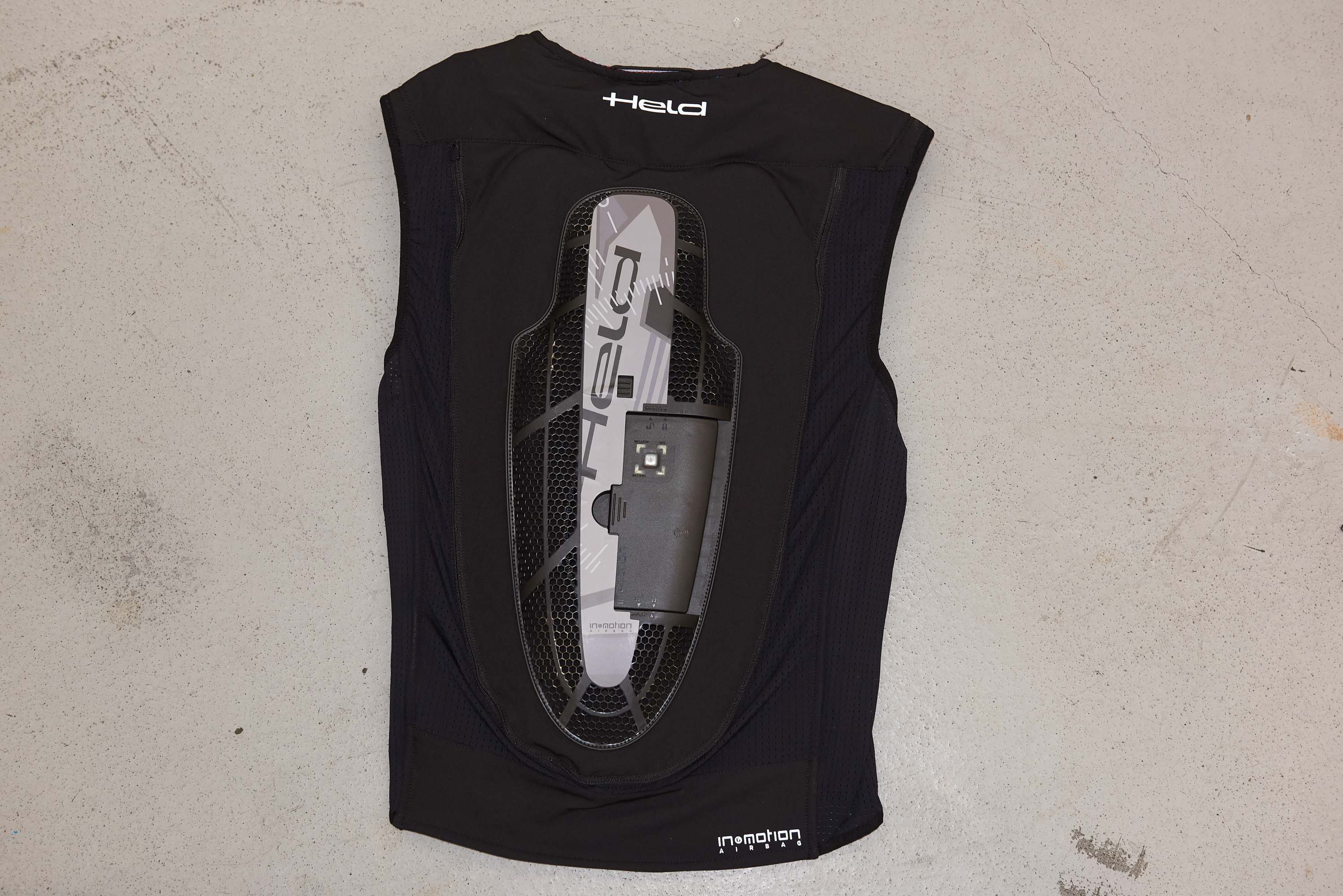 Pri izdelku znamke HELD je treba kupiti dva kosa opreme - telovnik z varnostnim mehom in pripadajočo elektroniko - zato je tudi cena razmeroma visoka. Poleg razmeroma majhne mase se telovnik ponaša z dobro povezljivostjo: prek posebne aplikacije na pametnem mobilniku lahko opravimo različne nastavitve in spremljamo delovanje - tudi stanje vgrajene baterije.