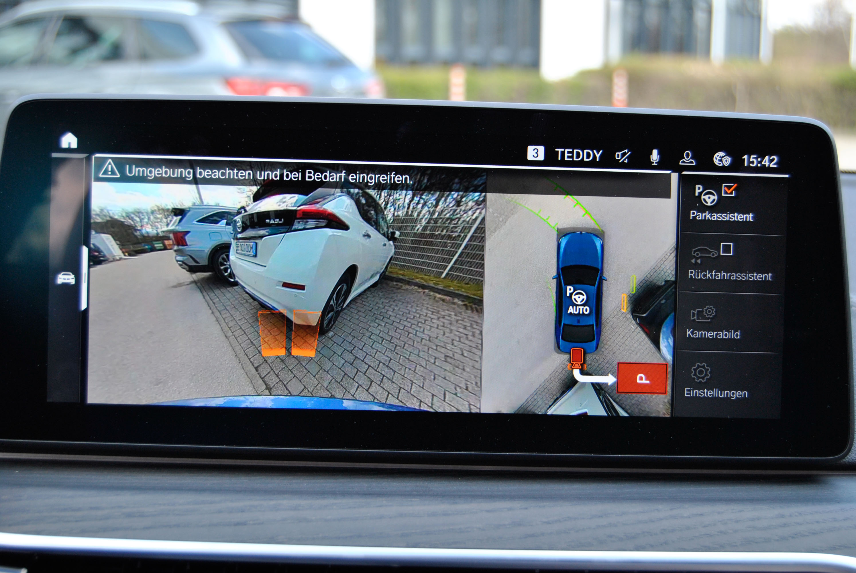 Ko enkrat potrdimo svojo namero, avtomobila parkirata povsem samostojno in brez posegov voznika oziroma držanja stikala, kar je treba storiti pri ostalih avtomobilih (iz Porscheja so nam sporočili, da bo takšna funkcionalnost za njihove avtomobile na voljo konec tega leta). Pri obeh avtih, tako seriji 5 kot razredu S, k natančnemu in učinkovitemu samodejnemu parkiranju veliko pripomore tudi štirikolesno krmiljenje obeh avtomobilov, saj to zaradi obračanja zadnjih koles in s tem večji okretnosti omogoča bočno parkiranje na parkirna mesta, ki so le meter daljša od dolžine avtomobilov.