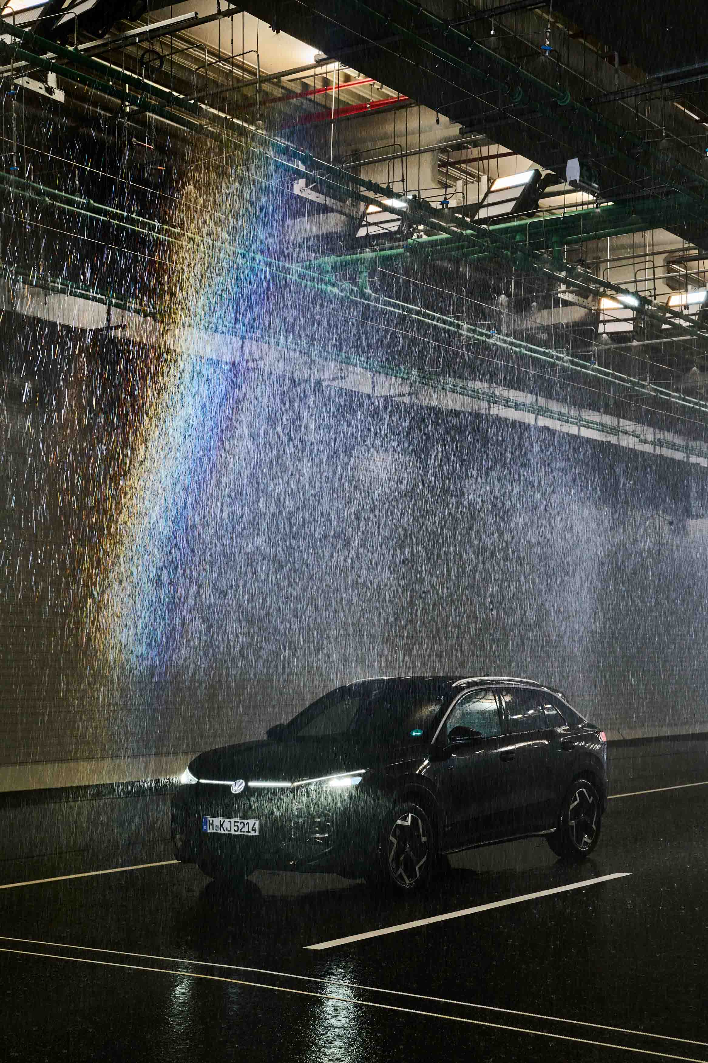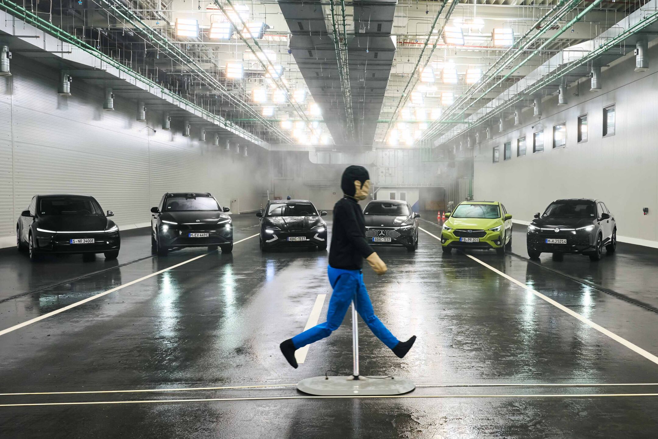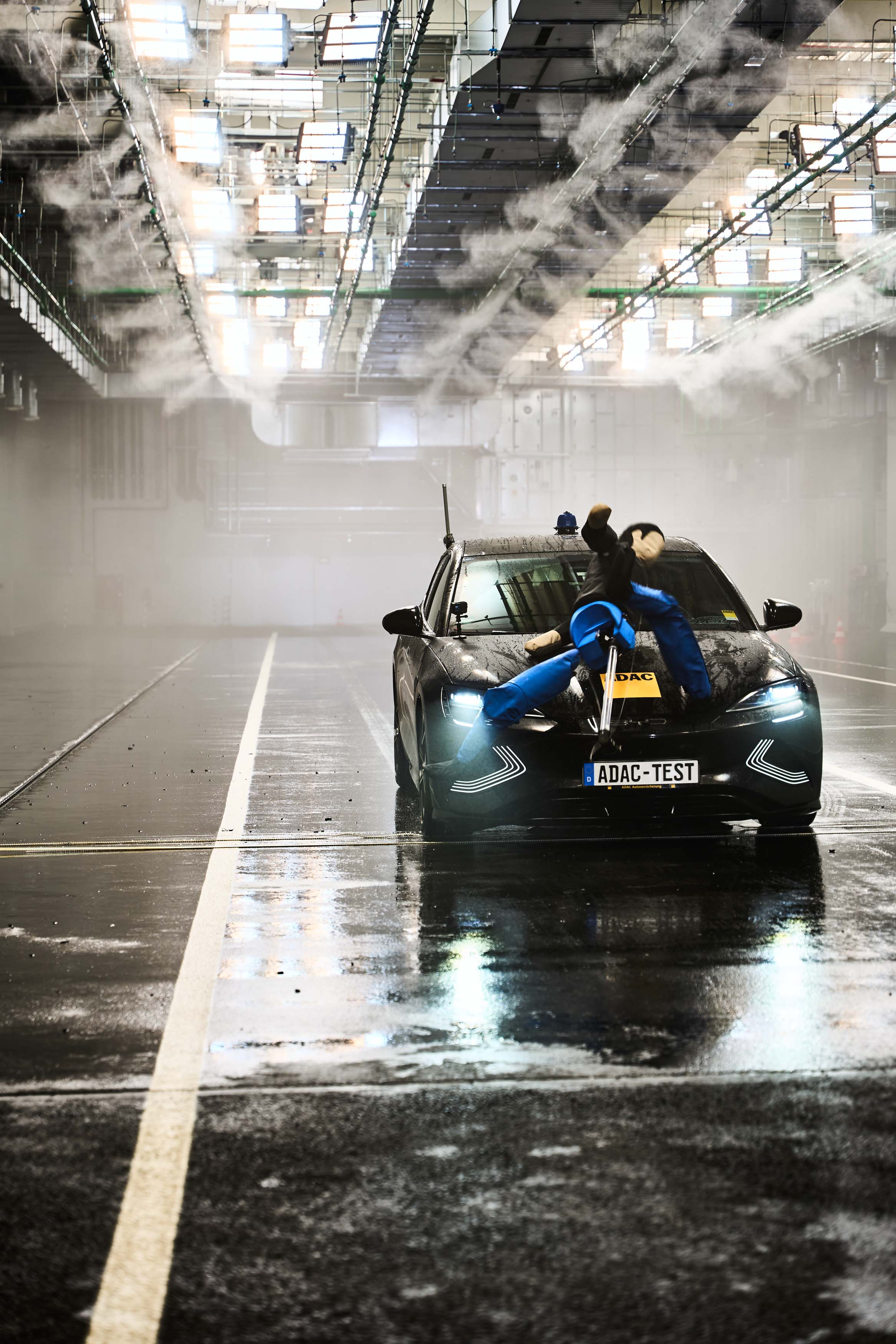 Posebna vremenska dvorana v nemškem Rodingu na površini približno 1600 kvadratnih metrov omogoča realistične in ponovljive vremenske razmere za testiranje tipala v dežju, megli in spremenljivih svetlobnih razmerah. Vozna površina je asfaltna, z definirano odbojnostjo in oznakami. V polju za dež 560 šob ustvarja naravno porazdelitev velikosti kapljic pri nastavljivih stopnjah padavin od 19 do 115 mm/h. Za meglo je na voljo 173 visokotlačnih šob; vidljivost je mogoče zmanjšati na približno 7 m. Osvetlitev dvorane sestavlja 60 LED-svetlobnih točk, dodatno pa je na voljo ksenonsko “virtualno sonce” za simulacijo slepeče in nasprotne svetlobe.