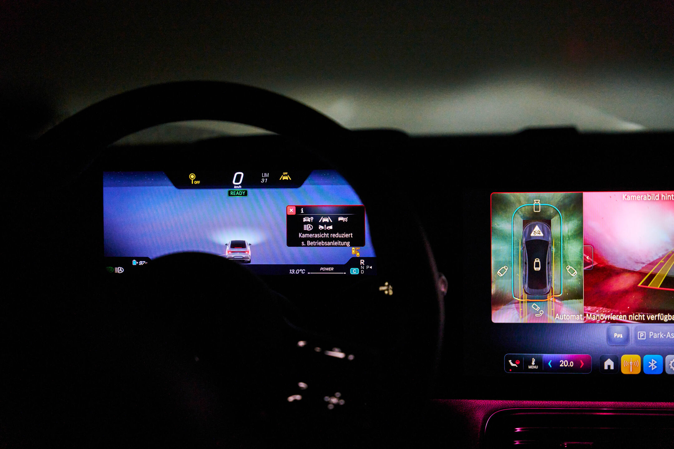 Vgrajena tipala: radar, kamera Rezultat Euro NCAP 2023 (zaviranje pred pešcem): pomanjkljivosti pri samodejnem zaviranju pred pešcem ponoči Preskus v vremenski dvorani: ob močnem dežju in gosti megli ni bilo skoraj nobene reakcije sistema. Avto tudi ni javil nobenih motenj tipala. |