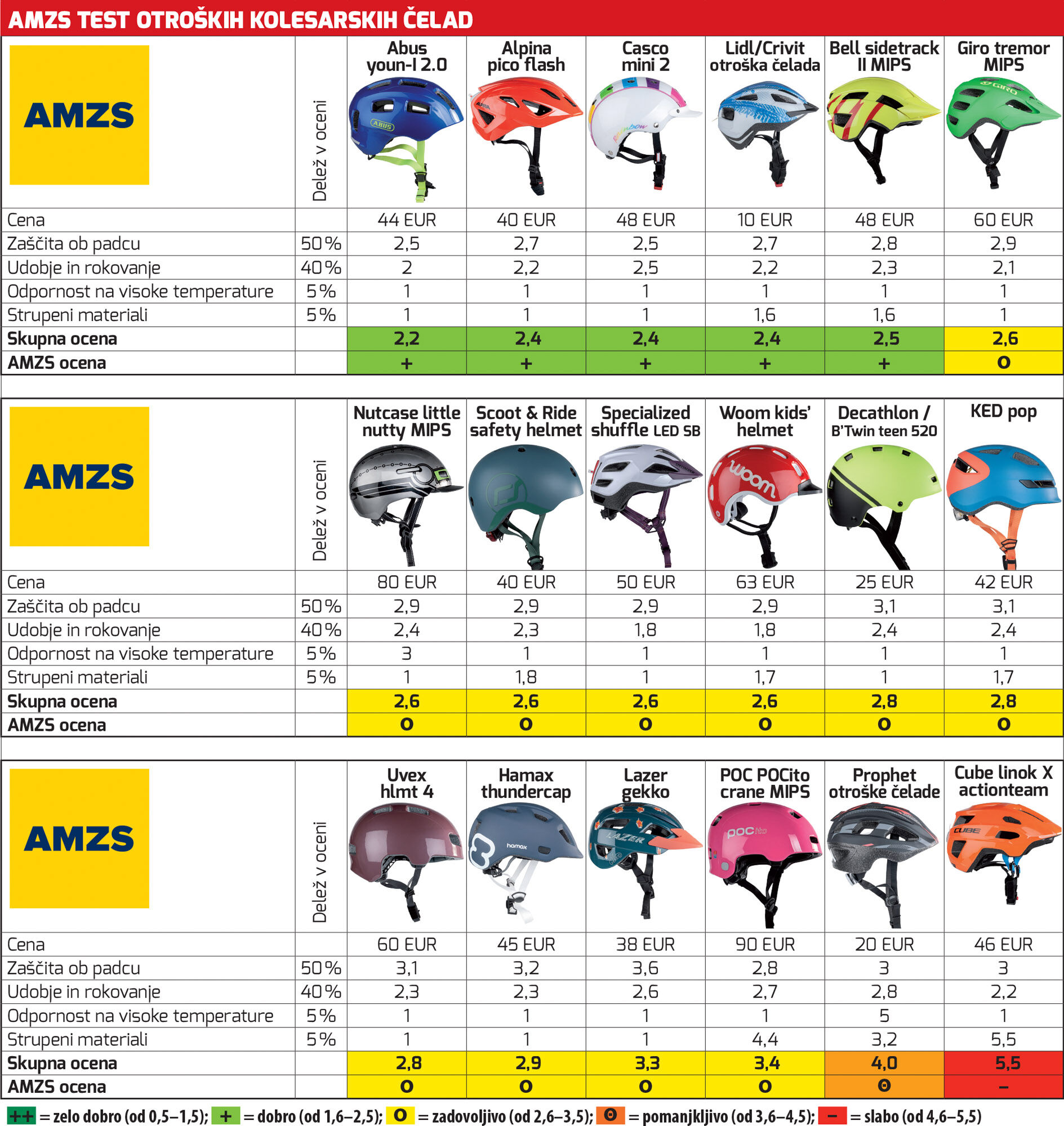 Pred šestimi leti smo objavili prvi AMZS test otroških kolesarskih čelad in z njim zajeli prvi val kolesarskega razcveta pri nas. Po šestih letih je koles in kolesarjev na naših cestah in kolesarskih stezah še bistveno več, kolesarskemu bumu pa seveda sledi tudi industrija kolesarske opreme, kamor spadajo zaščitne čelade. Izbira teh je v trgovinah vse bogatejša, med poplavo znamk, oznak, velikosti in namembnosti kolesarskih čelad pa se je kar težko znajti. Test otroških kolesarskih čelad, ki ga pri AMZS izvajamo skupaj z nekaterimi drugimi evropskimi avtomobilskimi klubi, vsekakor lahko pomaga pri nakupnih odločitvah. Letos smo preskusili 18 otroških kolesarskih čelad različnih cenovnih razredov in med drugim ugotovili tudi, da kakovost čelade ni odvisna od njene cene …
