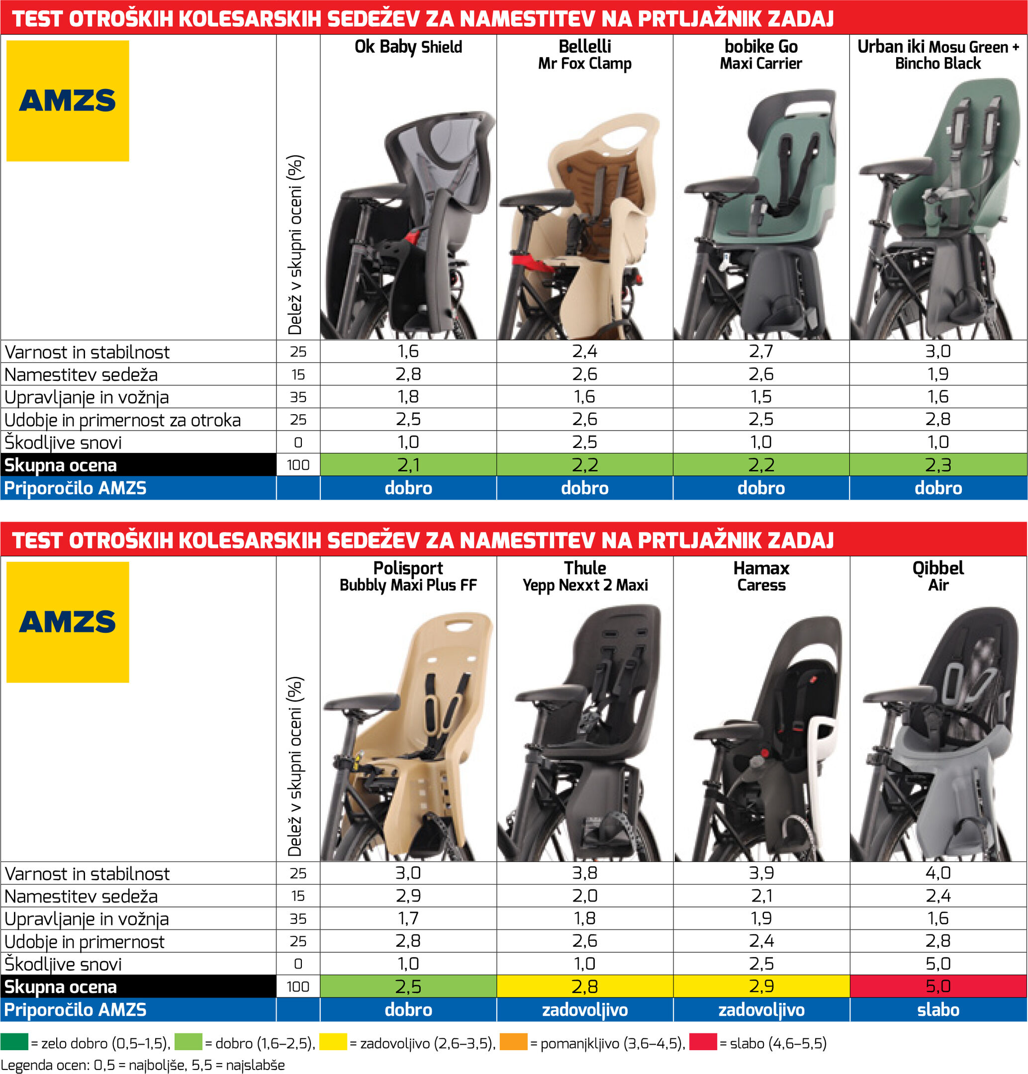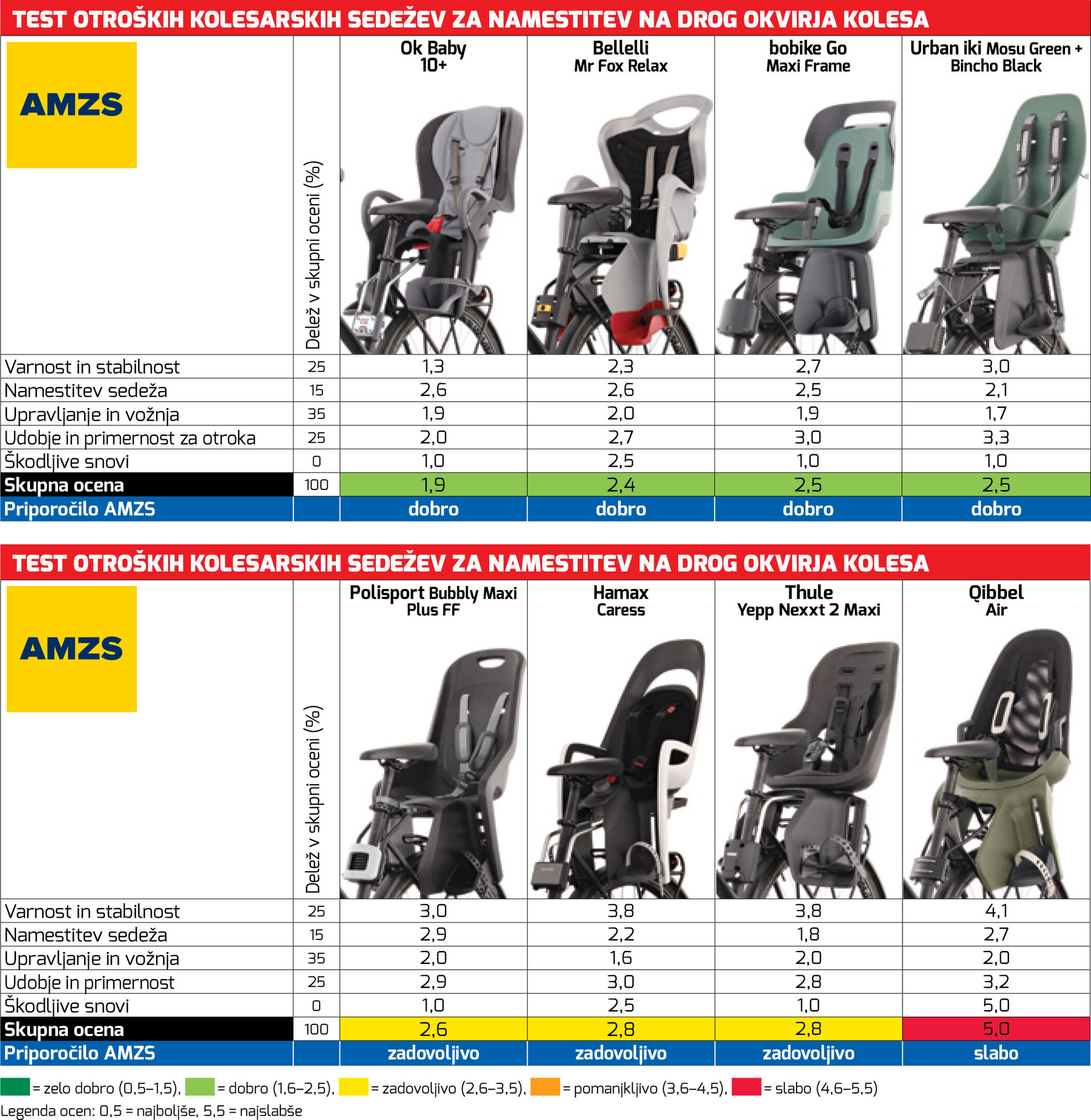 Preskus je pokazal, da nekateri izdelovalci znajo zasnovati čvrst in stabilen sistem pritrditve sedeža na kolo, pri drugih pa je še veliko možnosti za izboljšave.