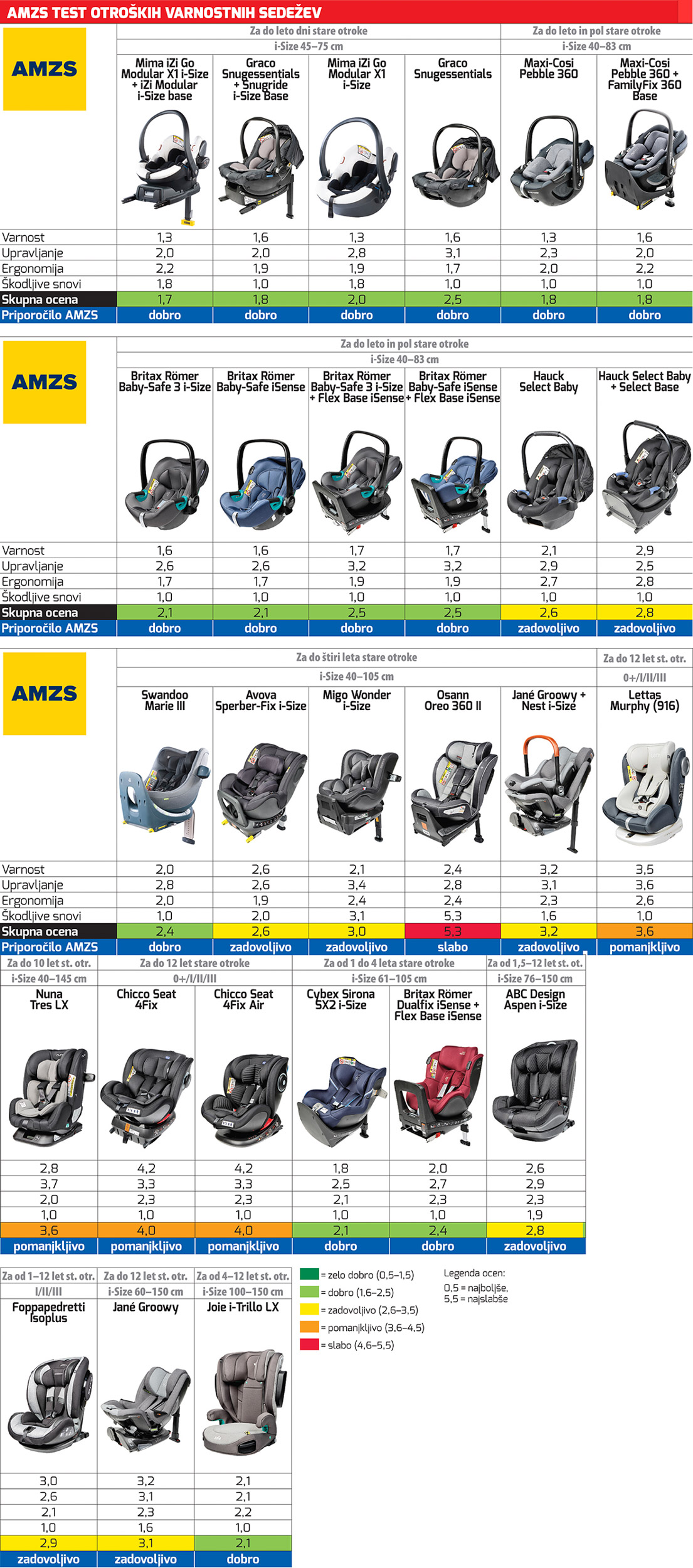 Med 27 preskušenimi sedeži na jesenskem delu vsakoletnega testa otroških varnostnih sedežev jih je več kot polovica dobila oceno dobro in njihov nakup v AMZS priporočamo. A štirje sedeži z oceno pomanjkljivo in en sedež s slabo oceno - torej skoraj petina vseh preskušenih sedežev - so dokaz, da so naši testi sedežev še vedno nujno potrebni, saj dobra ocena na testu ni samoumevna; izdelovalci sedežev imajo še vedno težave zasnovati in izdelati univerzalno dober sedež, ki bi se dobro odrezal pri vseh ocenjevalnih merilih hkrati.