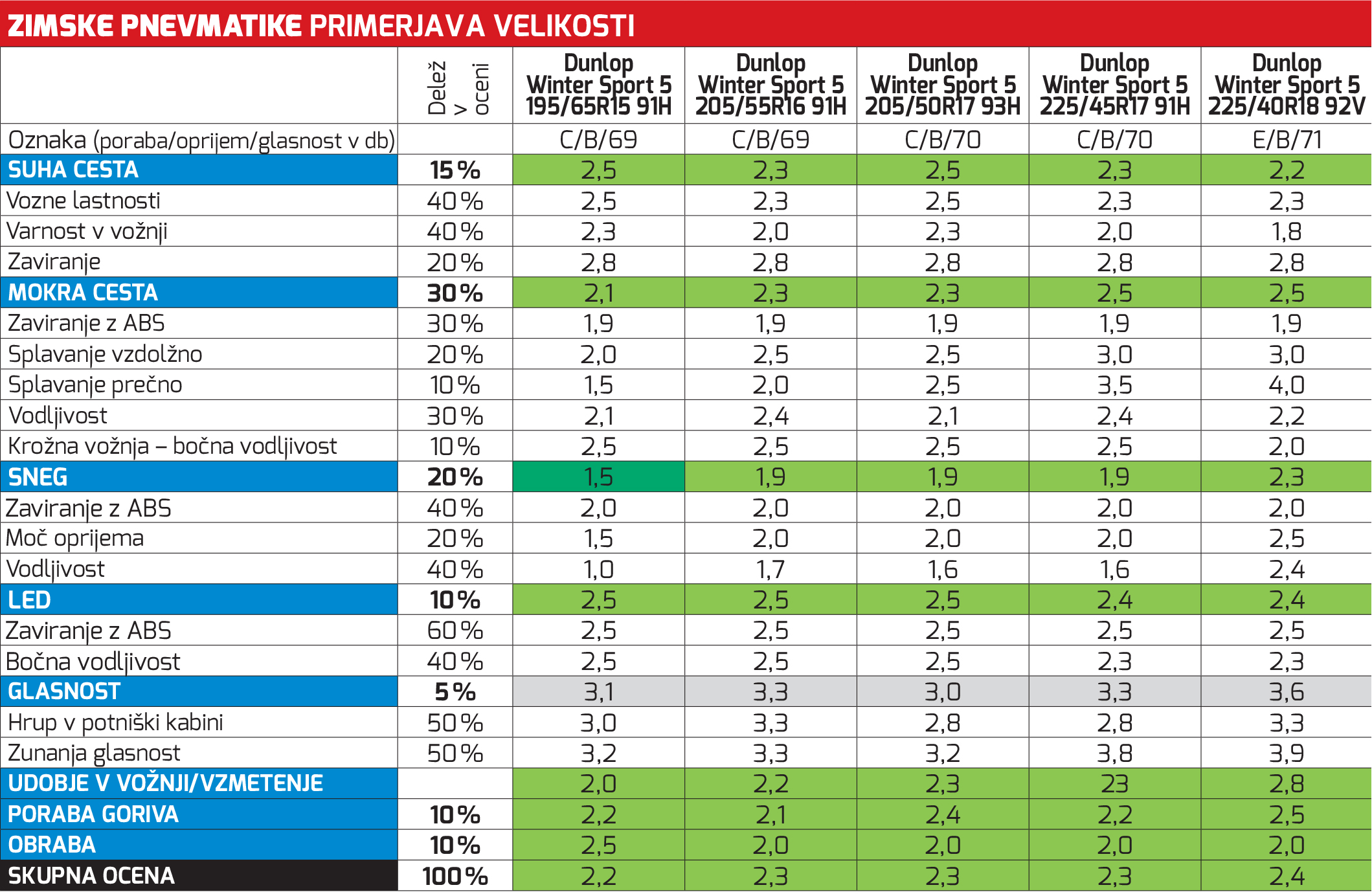 Te razlike so še en opomnik, da si velja tabelo z rezultati ogledati podrobneje – in razbrati lastnosti, ki najbolj ustrezajo vašemu načinu vožnje, potrebam in zahtevam.