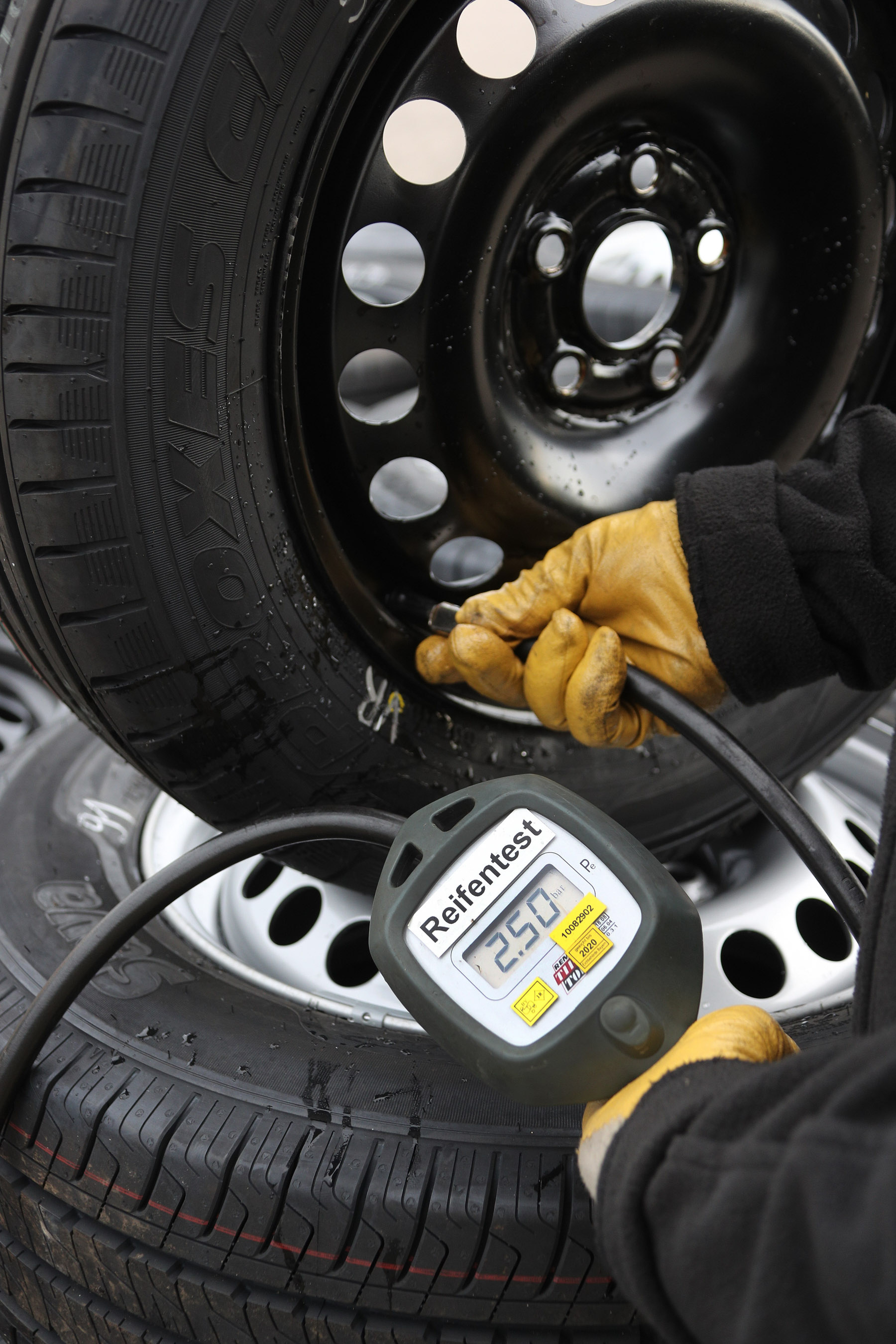 | Marsikateri voznik se ob nakupu pnevmatik zanaša na označevalne nalepke, kjer lahko razbere, kako se pnevmatika odreže pri treh merilih - oprijemu na mokrem, pri kotalnem uporu in pri glasnosti. Za prvi dve merili pnevmatika dobi oznako od A do G, pri tretjem merilu je napisana glasnost v decibelih. A pozor, nalepke za “tovorne” pnevmatike (z oznako C) ne moremo primerjati z nalepkami za “osebne” pnevmatike: “tovorne” pnevmatike imajo drugačna merila in precej nižje mejne vrednosti. Primer: vse preskušene pnevmatike se po nalepkah pri oprijemu na mokrem uvrščajo v razred A ali B, če pa bi upoštevali nalepke pnevmatik za osebne avtomobile, bi se uvrstile v razrede C ali D. |