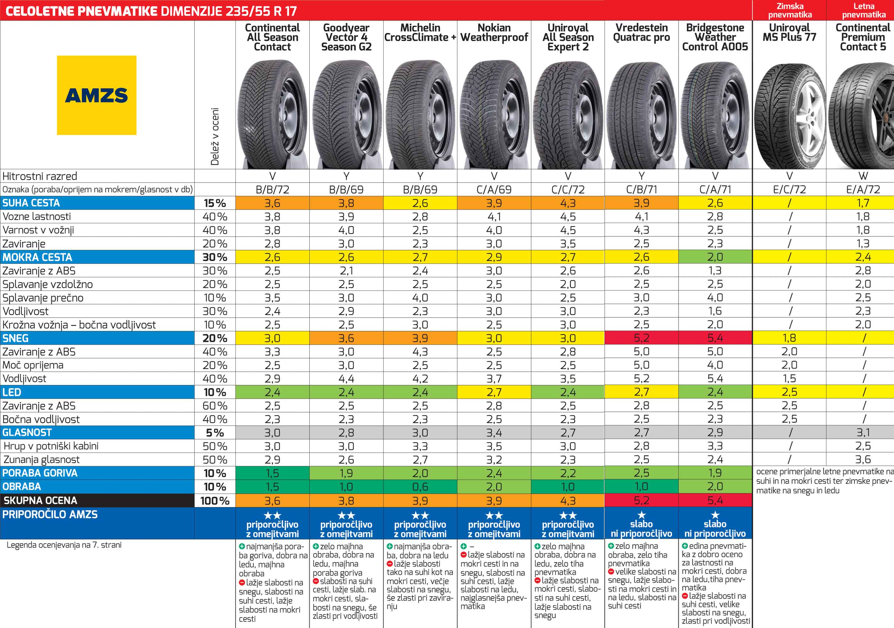 Običajno test celoletnih pnevmatik objavimo pred poletjem, letos pa smo morali zaradi omejene možnosti testiranja v času epidemije novega koronavirusa izid testa prestaviti na poznopoletni čas. A nič zato: celoletne pnevmatike so namenjene uporabi skozi celo leto in za kupce je pravzaprav vseeno, kdaj gredo v trgovino po celoletne pnevmatike. A letošnji test celoletnih pnevmatik dimenzije 235/55 R 17 je znova pokazal, da naj vozniki o nakupu vendarle dobro razmislijo; nič kaj blesteči rezultati testa opozarjajo, da so celoletne pnevmatike le kompromisna rešitev.