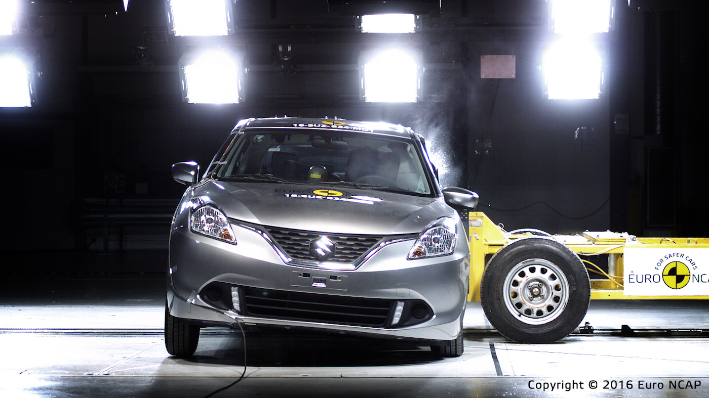 Novi suzuki baleno, ki bo na naše ceste zapeljal čez nekaj mesecev, je ob serijski opremi dobil tri zvezdice, z dodatno opremo Safety Pack pa štiri zvezdice. Serijsko opremljen baleno je dobil za zaščito potnikov 80 odstotkov točk, za zaščito otrok 73, za zaščito pešcev 65 in za vgrajene varnostne naprave 25 odstotkov točk. Z vgrajeno varnostno opremo pa je dobil za zaščito potnikov 85 odstotkov (5 odstotnih točk več), za zaščito otrok in pešcev 73 oziroma 65 odstotkov (enako kot pri serijski opremi), za varnostne naprave pa 43 odstotkov (18 odstotnih točk več).