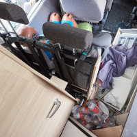 | napeljava in pohištvo: vse omare oziroma predalniki namenjeni težjim predmetom morajo biti nameščeni na tla, saj imajo tam skupaj s tovorom najmanjši učinek na vozne lastnosti vozila. Pohištvo naj bo stabilno in dodatno vpeto v karoserijo vozila. Pohištvo mora biti dovolj stabilno, da prenese obremenitve ob trku in ne sme predstavljati dodatne nevarnosti za potnike v bivalnem delu, |