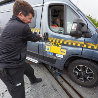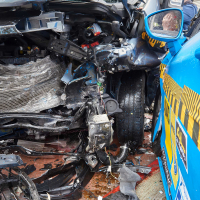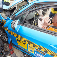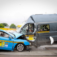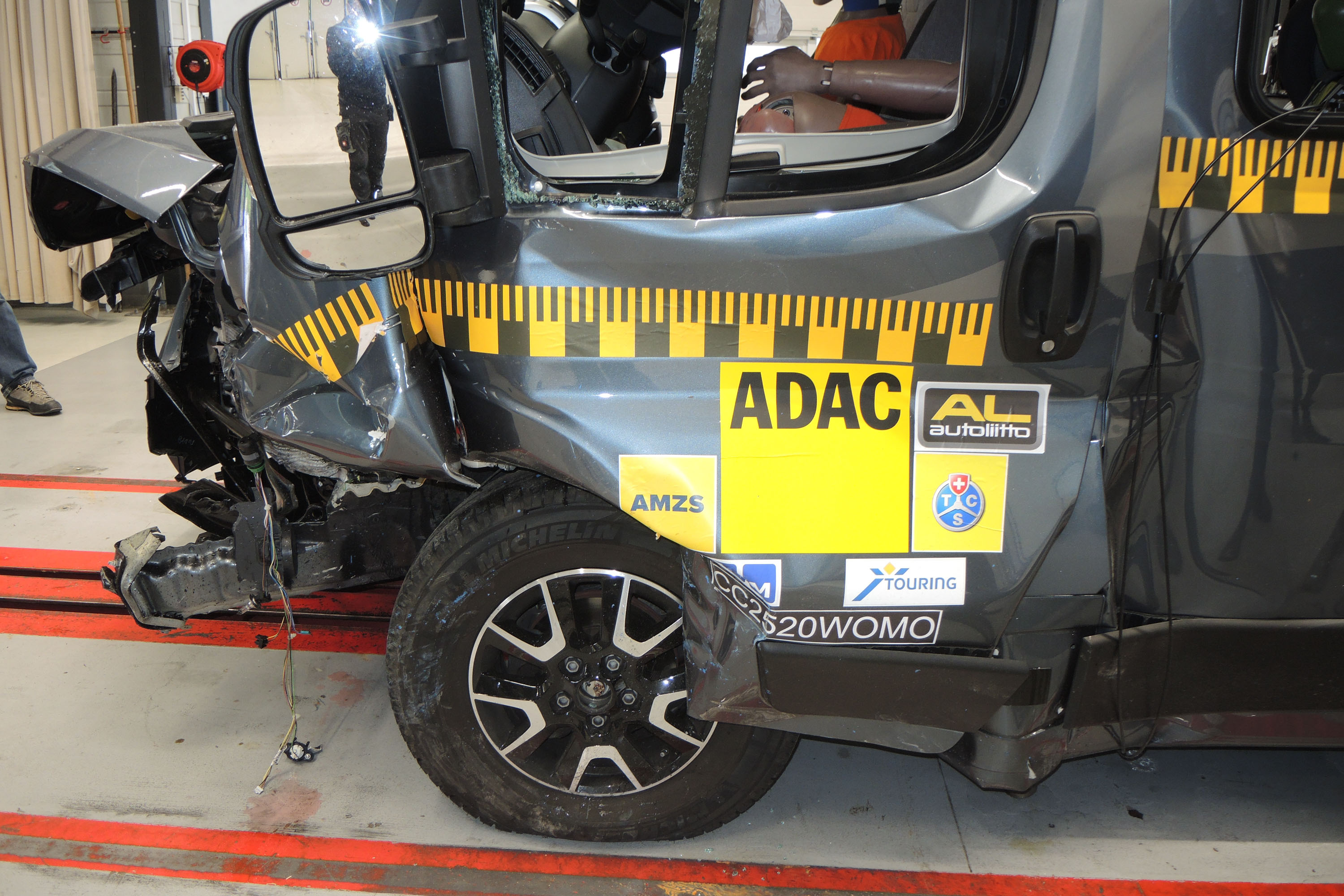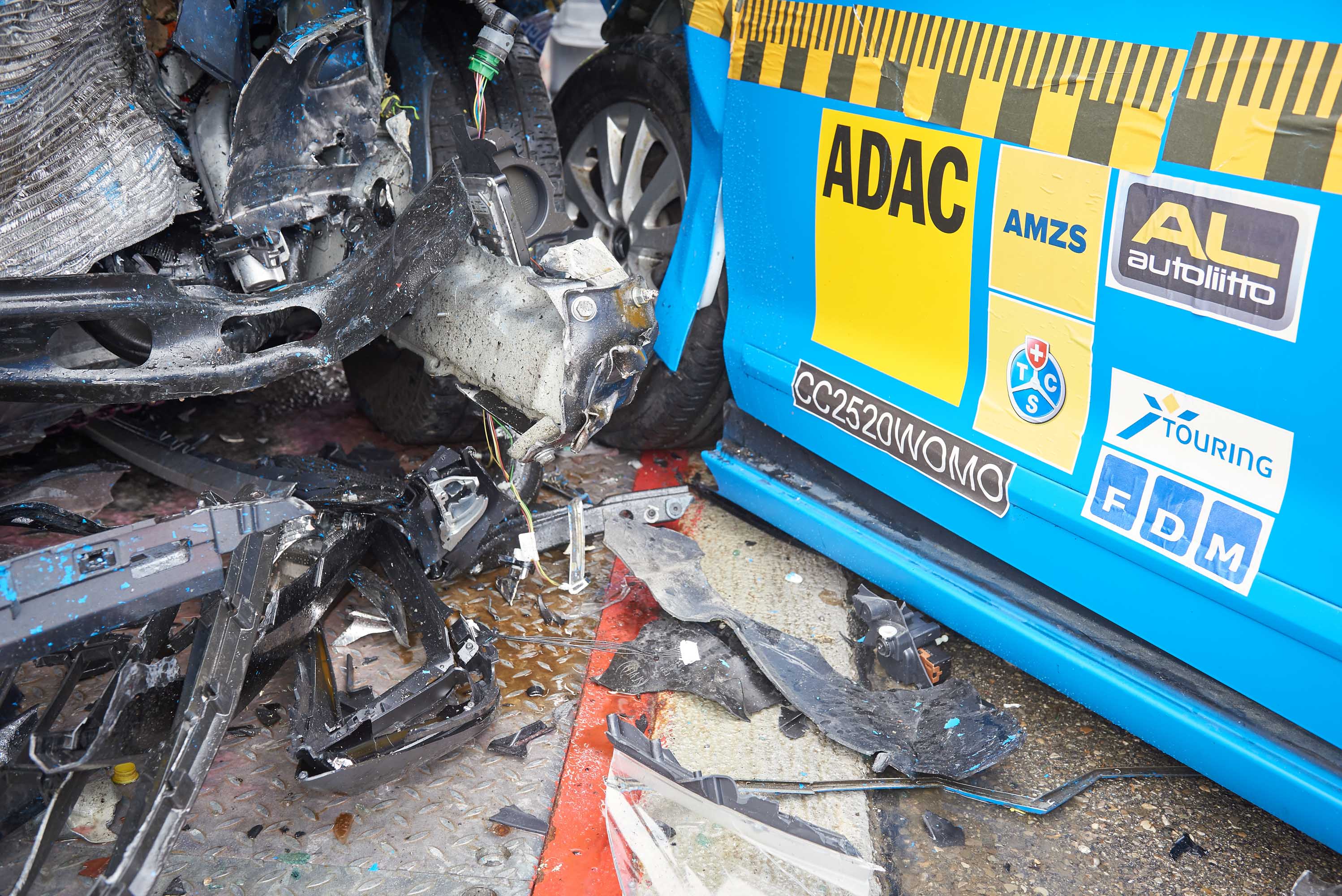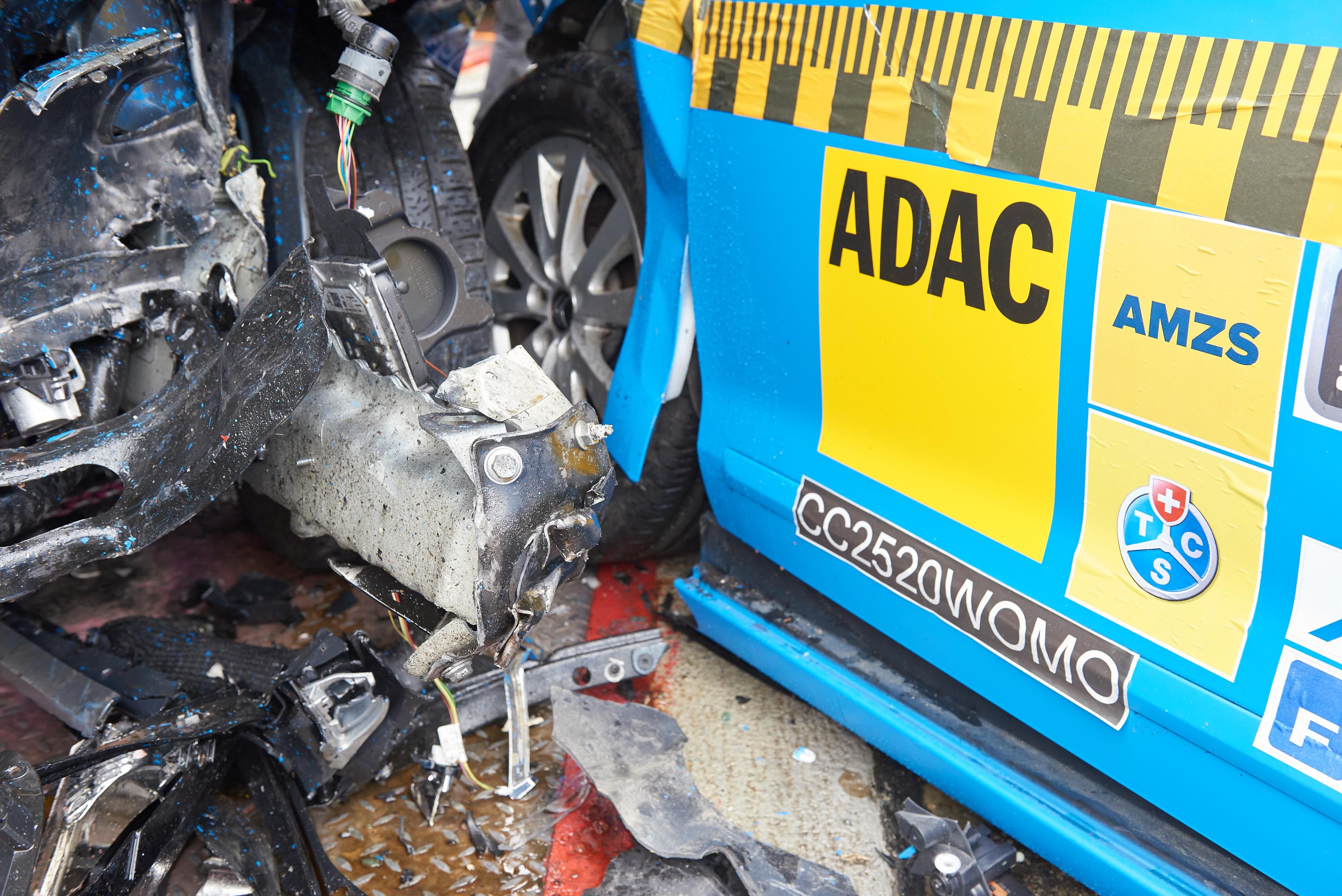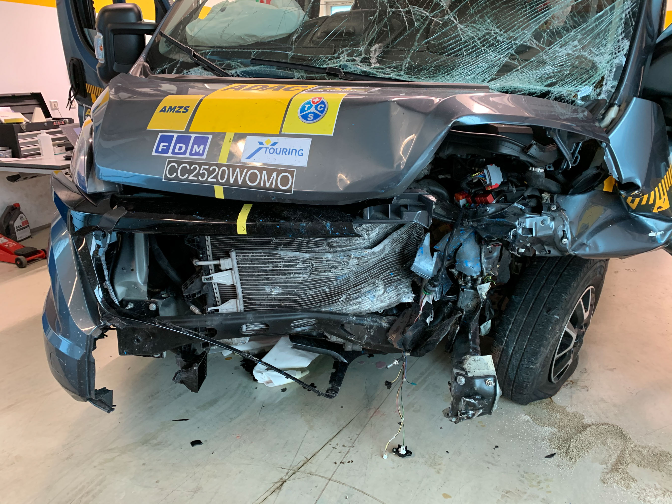 | Čeprav je bila hitrost ob našem preskusnem trku 8 km/h nižja od hitrosti na preskusnih trkih konzorcija Euro NCAP (64 km/h), so meritve pokazale, da je zaradi razlike v masi prednji del avtomobila ob trku z avtodomom izpostavljen približno polovico večji energiji. To je strukturo avtomobilske karoserije obremenilo do skrajnih meja. |