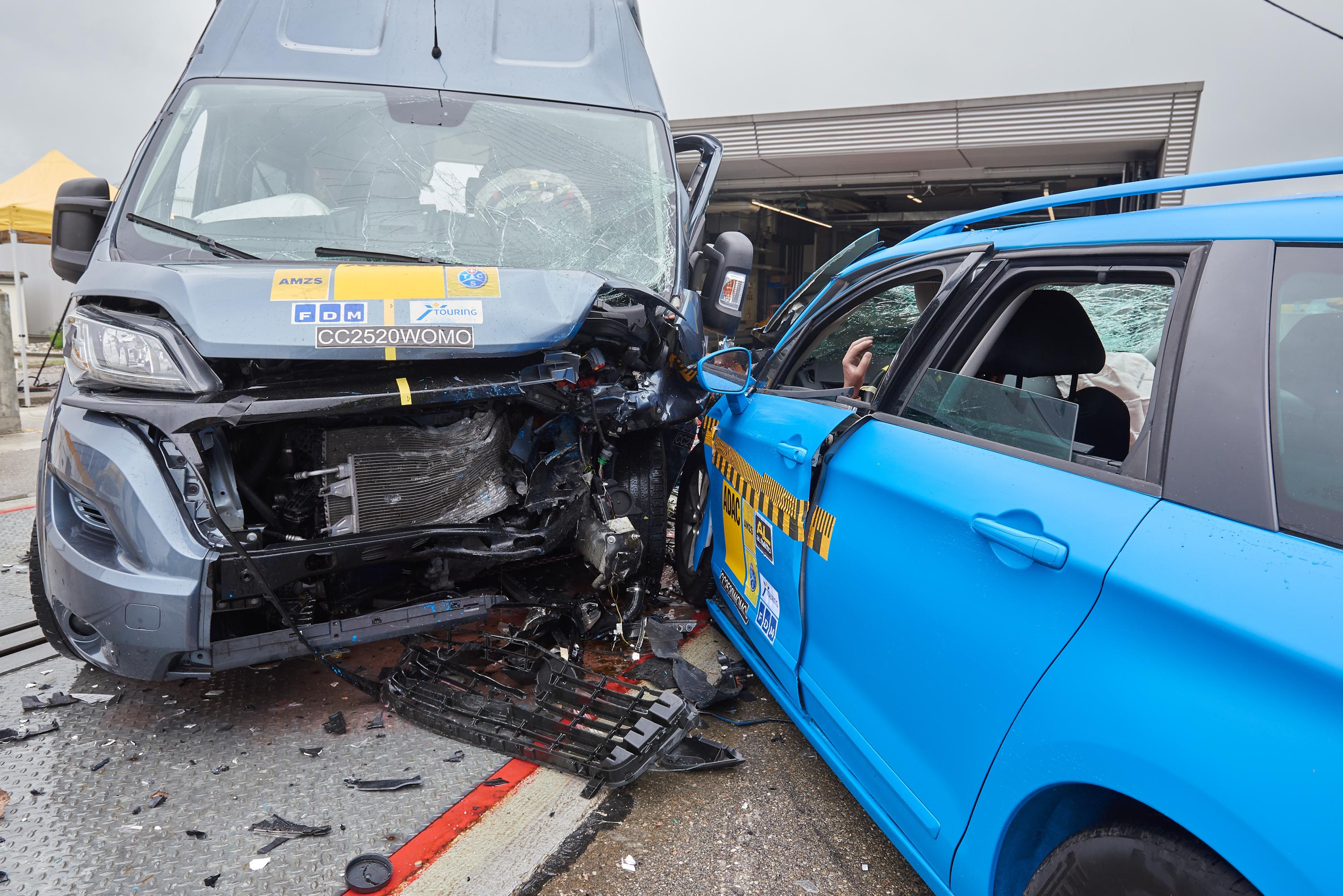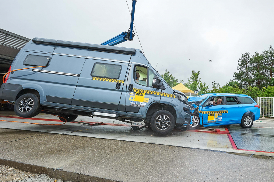 Bivalni kombiji oziroma avtodomi, v katerih je bivalna nadgradnja vgrajena znotraj tovornega prostora lahkega dostavnika s skupno maso do 3500 kg, so v zadnjih letih doživeli razcvet in spadajo med najbolj priljubljena počitniška vozila v Evropi. Veliko parov, pa tudi družin jih uporablja skozi vse leto tudi za krajše vikend izlete ali celo kot osebno vozilo za vsak dan. Zato je vsekakor na mestu vprašanje, kako varni so ti bivalni dostavniki v prometni nesreči. Kaj se ob trku dogaja z vgrajenim pohištvom, kuhinjsko opremo, predali s posodo in ostalimi tovorom, ki se v hiši na kolesih vozi v istem prostoru kot potniki? Odgovore razkriva preskusni čelni trk avtodoma in osebnega avtomobila.