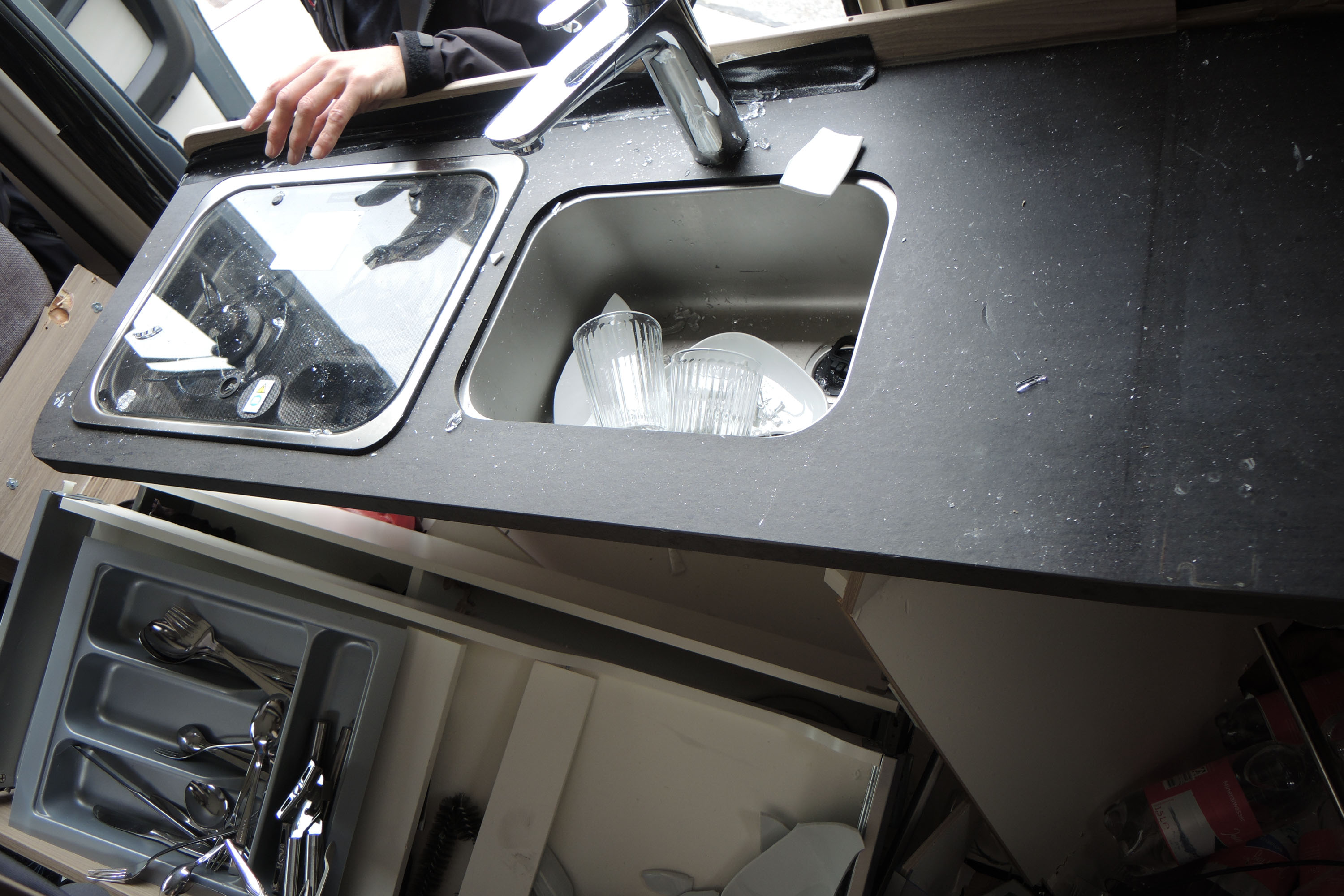| med vožnjo ničesar ne puščajte na kuhinjskih površinah, pribor in posodo pa vedno dosledno zložite ter zapahnite v predale. Večje posode in ponve sodijo v nižje ležeče predale, |