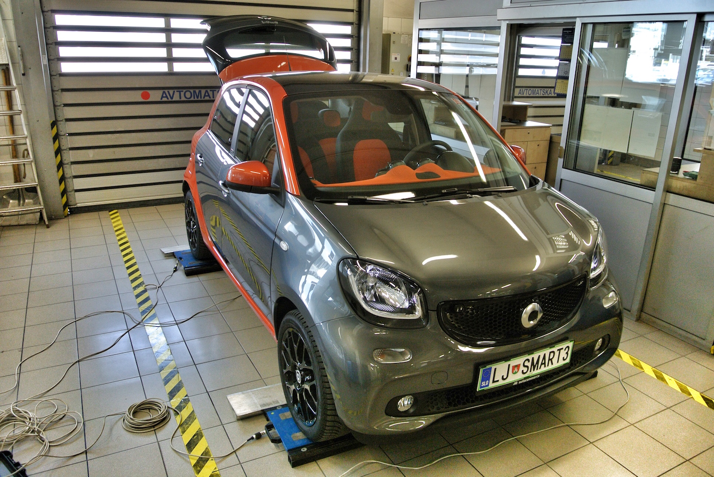 Na umerjeno in certificirano tehtnico v delavnici za tehnične preglede poslovne enote AMZS v Ljubljani – tehtnico pregledniki AMZS uporabljajo pri posamičnih homologacijah – smo postavili smart forfour edition #1, jeep renegade 1.6 JTD FWD limited in opel insig-nio sport tourer 2.0 CDTI biturbo – tri različne avtomobile v treh različnih razredih (več smo o omenjenih avtih napisali v prejšnji številki Motorevije). Pri tem smo pazili, da so bile posode za gorivo vsaj 90-odstotno polne, prav tako smo iz avtomobilov pobrali vso prtljago oziroma predmete, ki sicer niso del obvezne avtomobilske opreme. Izmerjenim rezultatom smo za vsak avto prišteli 75 kg kot maso voznika, tako dobljene rezultate pa primerjali s podatki o masi iz prometnih dovoljenj.