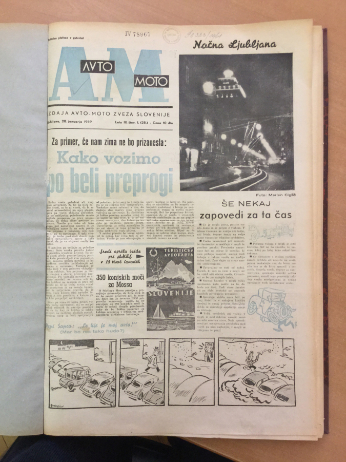 Avto-moto zveza Slovenije ima danes v Sloveniji 64 društev z nad 10.000 člani. Reševanje obširne problematike s področja motornega prometa je prived-lo Avto-moto zvezo Slovenije do sklepa, da prične izdajati ta časopis, ki bo zaenkrat izhajal mesečno. Seznanjal bo našo javnost in članstvo z novostmi iz avtomobilske tehnike in proizvodnje, o športu doma in v tujini, gradnji in opremi cestnih objektov, obravnaval bo vprašanja avtomobilskega turizma, varnosti prometa, društvenega življenja itd. (št. 1, januar 1957)