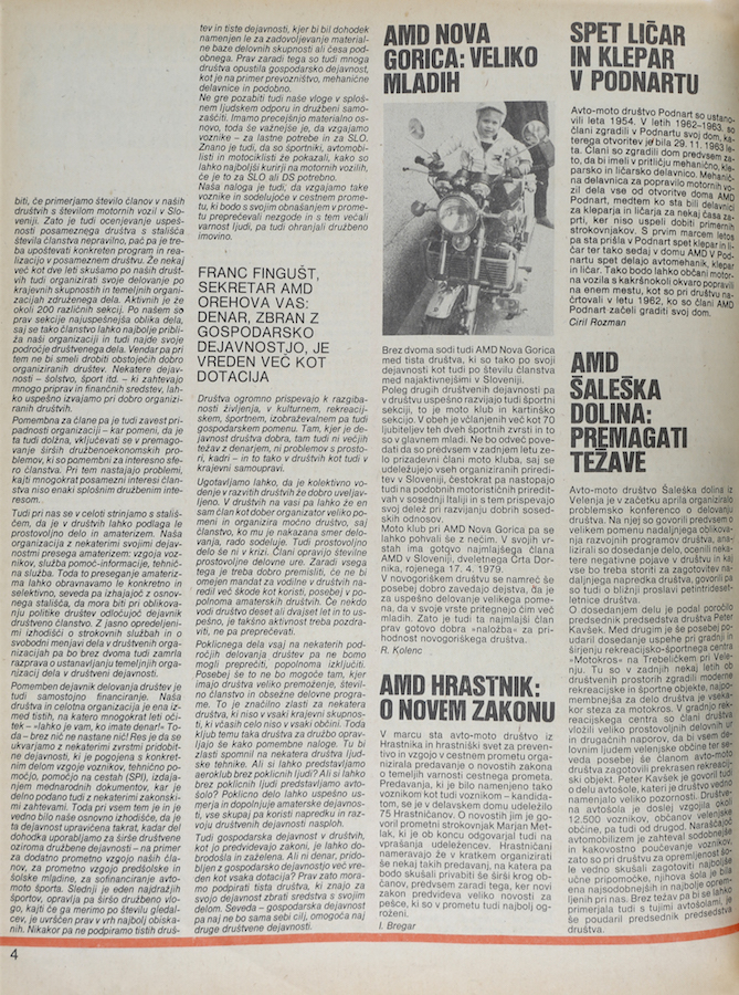 Prav v trikotniku člani – članarina – Motorevija pa je v zadnjem obdobju prišlo do nekaterih težko premostljivih ovir, katerih končna posledica je dejstvo, da bomo letos lahko izdali le šest številk Motorevije. (marec – april 1986)