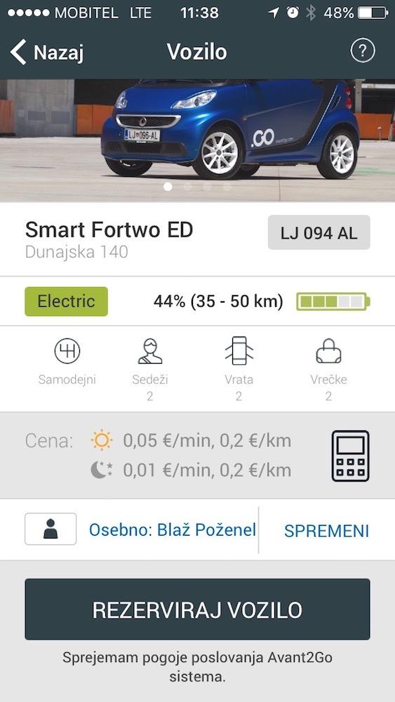 A pojdimo po vrsti. Ljubljanski car sharing Avant2GO je sistem souporabe avtomobila, ki so si ga zamislili in postavili pri podjetju Avantcar, v katerem se tudi sicer ukvarjajo z oddajanjem vozil in upravljanjem voznih parkov. Zaživel je z začetkom letošnjega julija, ko so dali v uporabo prvih 30 avtomobilov in usposobili prvih 12 prevzemnih in predajnih mest oziroma parkirišč po Ljubljani. Avantcarjev sistem souporabe avtomobilov se razlikuje od večine podobnih sistemov po tem, da ima v svoji floti zgolj električne avtomobile – nekaj je električnih smartov fortwo ED, nekaj je renaultov zoe, nekaj pa BMW i3. Avantcarjeva odločitev za zgolj električne avtomobile je zanimiva, skozi njihov poslovni model pa tudi logična. Ker so predvideli souporabo avtomobilov zgolj za vožnjo po Ljubljani in njeni neposredni okolici, je električni pogon za to najprimernejši; s polnilnicami na njihovih parkiriščih oziroma prevzemnih mestih imajo zagotovljene polne akumulatorje, avtom ni treba dotakati goriva, lažji pa je tudi obračun stroškov najema.