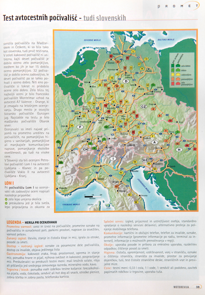 Test avtocestnih počivališč je nastal v okviru mednarodnega projekta EuroTest, v katerem sodeluje 12 avtomobilskih klubov, med njimi pa je tudi AMZS. (avgust – september 2001)