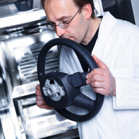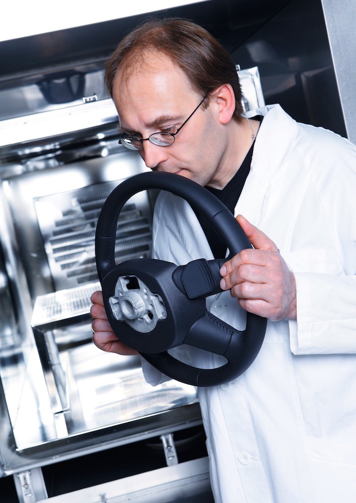 Ena od takih značilnih vonjav, ki jih zaznavamo, je tudi skupek dražljajev, ki jih v naš nos pošilja čisto nova avtomobilska kabina. Lepo je sesti v avto, ki diši po novem. Počutje v avtomobilu pa je v veliki meri odvisno od vonja uporabljenih materialov v potniški kabini. Ti – še preden gre avtomobil v serijsko izdelavo – dobijo celovito kemično analizo, s katero izdelovalci preverijo, kakšne vonjave bodo avti oddajali denimo na razgretem parkirišču sredi poletja. Ne gre samo za posamezne elemente notranjosti, ampak celovit vonj, ki ne sme pretirano reagirati na dejavnike iz okolja. Za lažjo predstavo: pod vročim poletnim soncem lahko temperatura v kabini hitro preseže 60 stopinj Celzija in samo predstavljajte si, kako bi vas odbilo, če bi denimo plastični elementi začeli oddajati vonj po stopljeni plastiki. Avtomobilski izdelovalci zato opravljajo temeljite laboratorijske raziskave, s katerimi sestavljajo recepturo vonja potniške kabine. Posamezne dele za več ur postavljajo v peči z nadzorovano temperaturo in potem s kromatografijo določajo kemično sestavo hlapov, ki jih material odda. Z natančno klinično sliko kemičnih hlapov posameznih materialov tako preverjajo, da se tudi pri visokih temperaturah in UV žarkih v kabini ne sprošča kakšna zdravju škodljiva ali pa pretirano hlapna snov, ki bi z vonjem izstopala in vplivala na zbranost ali počutje voznika. Preverjajo tudi, da materiali po določenih letih uporabe ne začno smrdeti tudi v klimatsko bolj zahtevnih območjih.