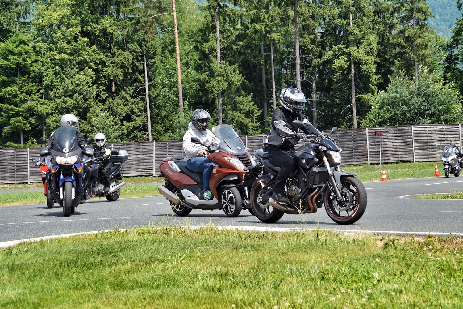 Intenzivni tečaj varne vožnje za motoriste je v AMZS centru varne vožnje na Vranskem dobro obiskan; termini se hitro zapolnijo, tečajniki pa so praviloma navdušeni. S takšnega tečaja nedvomno odpelješ kot boljši in varnejši motorist. Pri tem dejstvo, ali ima tvoj motor eno ali dve prednji kolesi, ne igra nobene vloge.