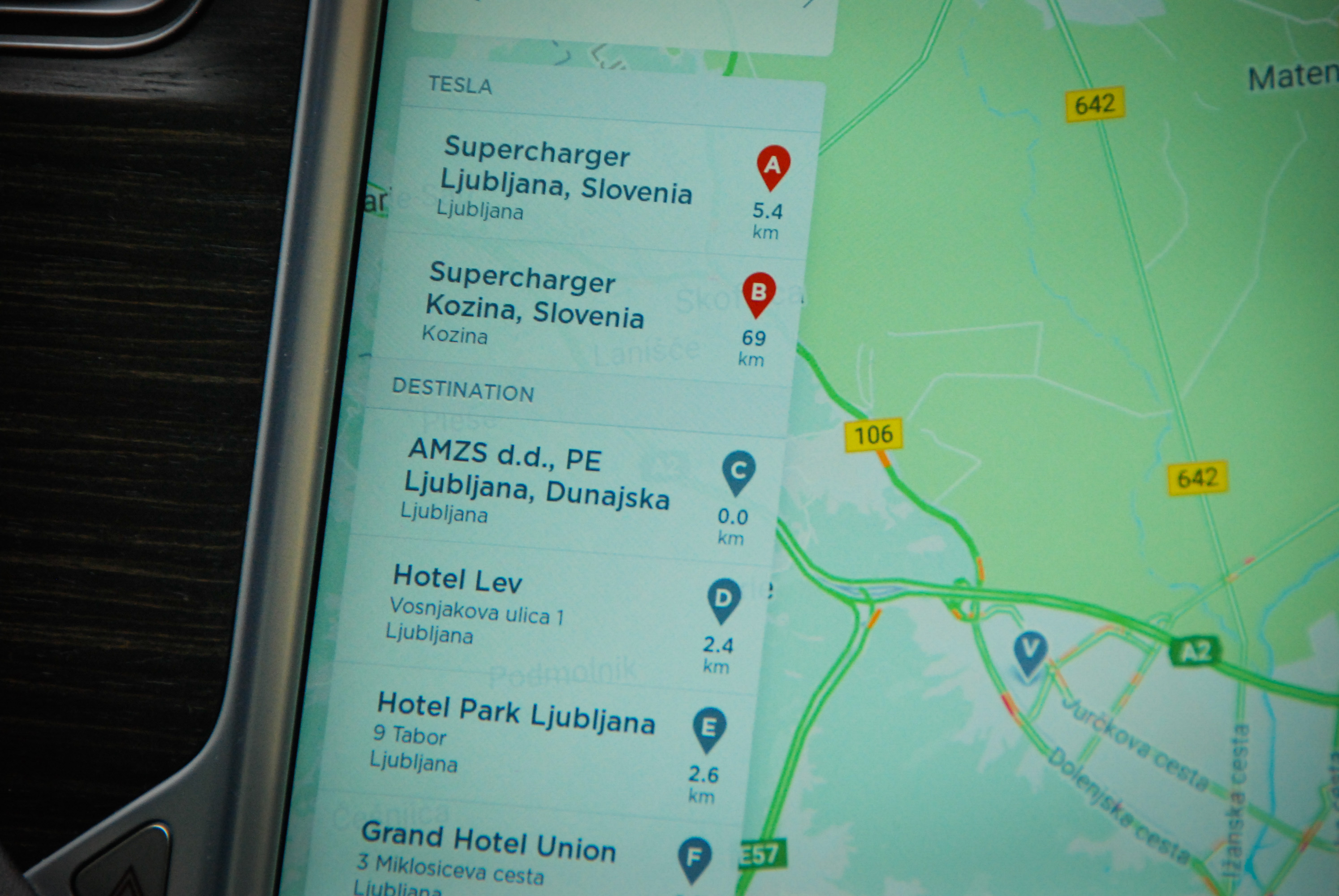 AMZS poslovna enota Ljubljana je že na zemljevidu navigacije v Teslinem modelu S.
