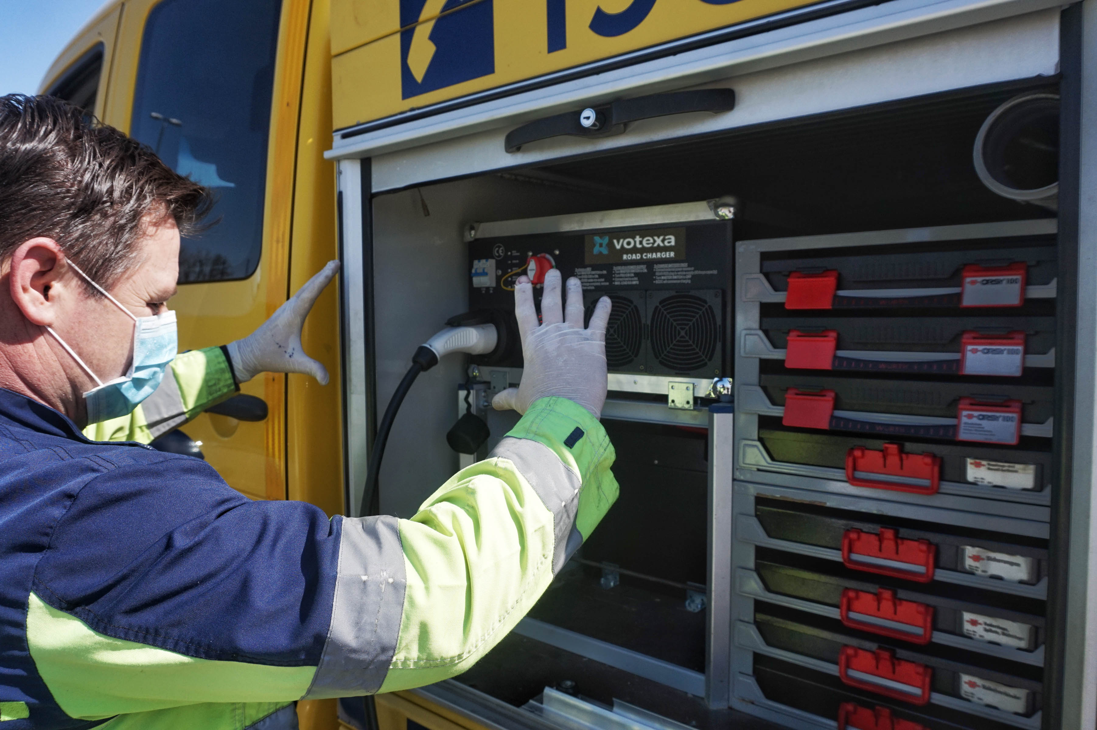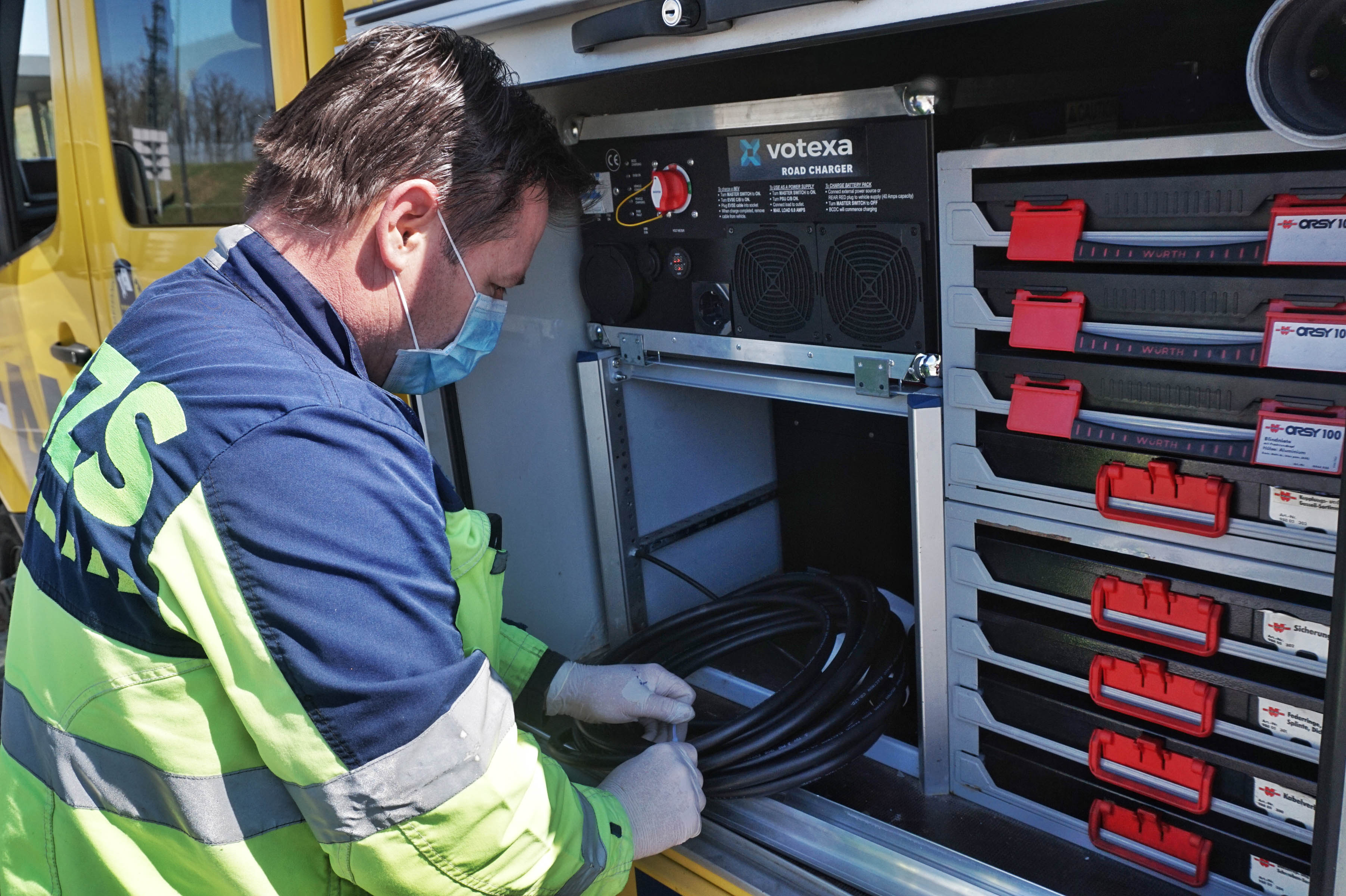 Mobilna polnilnica znamke Votexa, ki je trenutno nameščena v vlečno-servisno vozilo ljubljanskega centra AMZS, je sestavljena iz več sklopov - 24-voltnega LiFePo4 sklopa akumulatorjev z zmogljivostjo 153 Ah (nominalna zmogljivost) oziroma 3,6 kWh, polnilnika s pretvornikom, nadzorne elektronike, stikala in več izhodnih vtičnic.