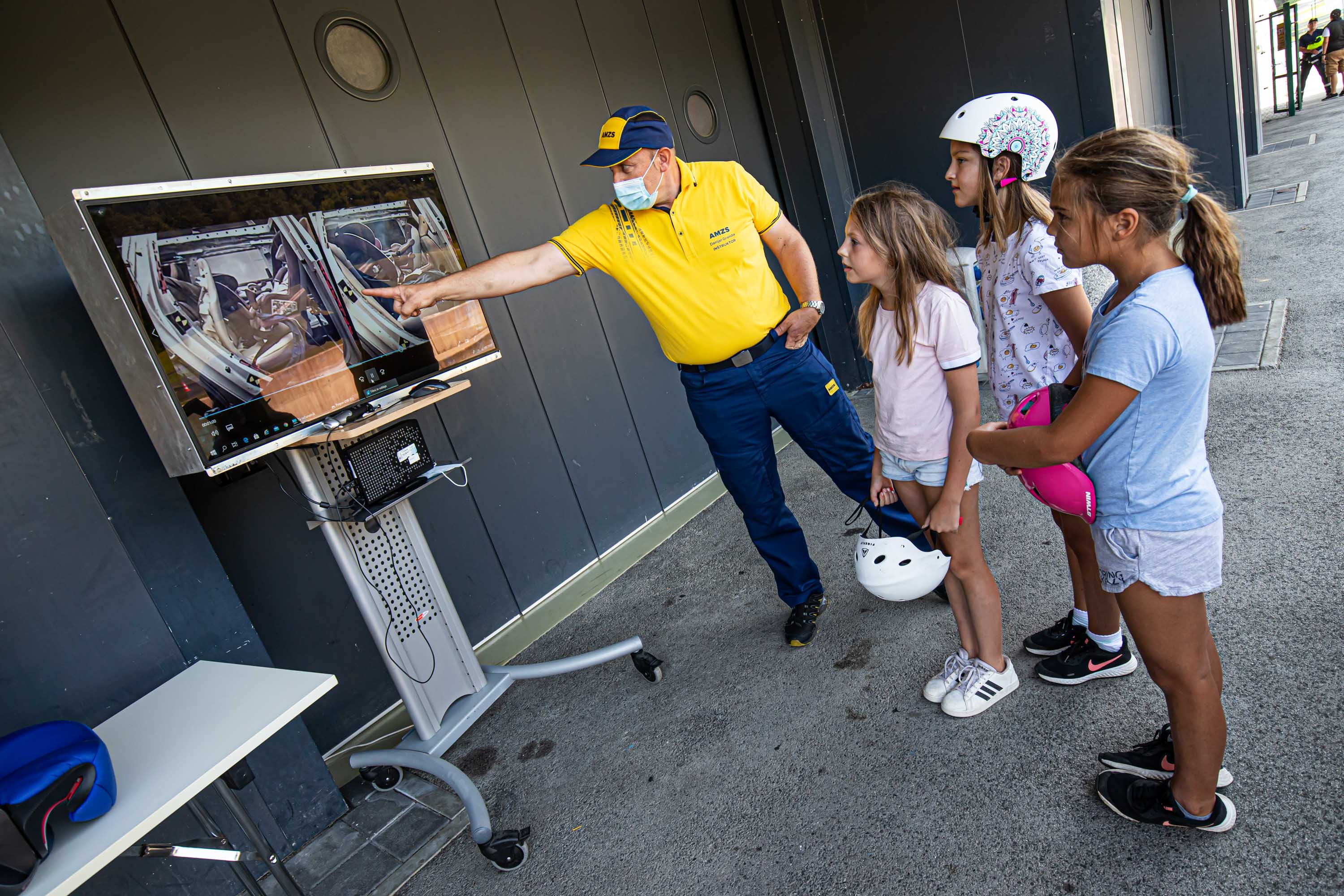 Med najbolj atraktivnimi je bil prikaz samodejnega zaviranja v sili. Ker AMZS že že nekaj desetletij vzgaja voznike, so se tokrat tudi najmlajši, ki bodo že čez dobro desetletje tudi sami postali vozniki in vozili v sodelovanju z umetno inteligenco, lahko prepričali, kako avto že danes zmore učinkovito pomagati vozniku pri preprečevanju prometne nesreče. Varno pripeti v otroške varnostne sedeže so s kančkom negotovosti in malce strahu prvič iz potniške kabine opazovali, kaj se zgodi, če voznik spregleda oviro na cesti. Kakšen mali potnik je celo zamižal, ko se je avto približeval naletni tarči, po uspešnem posredovanju sistema proti naletu pa je bilo veliko iskrenih nasmehov olajšanja in osupljivih pogledov, ko so zapuščali pametnega hyundaija. Erik Logar, vodja področja Varna mobilnost pri AMZS, je pojasnil, da je tak prikaz potencialno zelo nevarne vozniške napake in predvsem njene rešitve za otroke zelo pomemben iz več vidikov: “Otroci so se lahko v praktičnem prikazu prepričali, kako pomembna je uporaba varnostnega pasu in varnostnega otroškega sedeža že zgolj pri zaviranju, ki prepreči nesrečo. Ob tem so videli, zakaj mora voznik biti na cesti vselej zbran in predvsem uvideli, da avtomobil rabi določen čas in razdaljo, da se zaustavi. Gre za pomembno spoznanje razlike med vozilom in pešcem. Otroci so prišli do pomembnega spoznanja, da se sami kot pešci lahko ustavijo hipoma v vsega dveh korakih, še tako pameten avto pa tega ne zmore narediti tako učinkovito kot oni. Otroci so videli, da je najboljši asistenčni sistem še vedno predvsem naše zavedanje in čutila, ki nam jih je dala narava. Zato je prav, da se najprej naučimo lastne previdnosti, ki pa ji lahko potem učinkovito pomaga tudi zaščitna oprema oziroma sodobna tehnologija v obliki asistenčnih sistemov.”