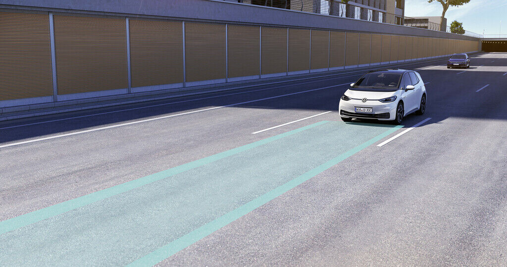 | Ko se avto približa robu ali sredinski črti ceste, sistem s posegom v volanski mehanizem ali zavorni sistem rahlo zavije proti sredini ali robu ceste. Preprostejši sistemi avto oddaljujejo od robnih črt, zmogljivejši pa ga držijo na sredini voznega pasu. Vsi tovrstni sistemi imajo vgrajeno varovalko, ki preprečuje, da bi voznik vožnjo povsem prepustil elektroniki; če voznik spusti volanski obroč iz rok za več kot 20 ali 30 sekund, se sistem izklopi. Sistem bo del serijske opreme pri vseh novih avtomobilih od leta 2024. |