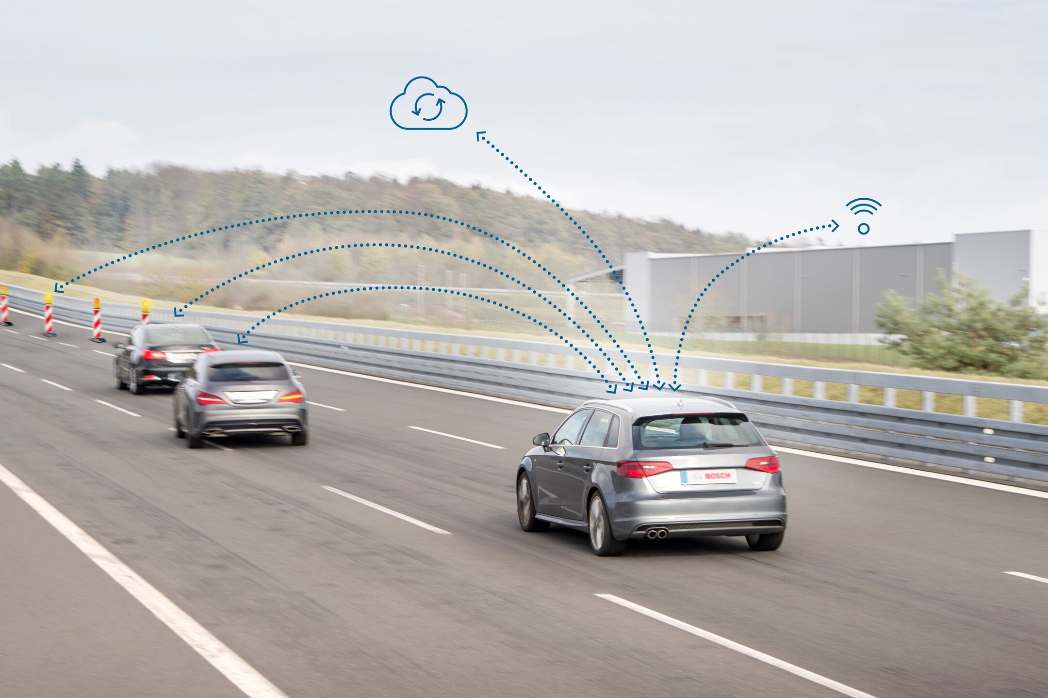 | Sistem prek telekomunikacijskega omrežja vzpostavi povezavo med avtomobilom in infrastrukturo oziroma drugimi avtomobili, s tem pa omogoča predčasno opozarjanje voznika na nesreče, zastoje, vremenske razmere, reševalna vozila in druge ovire v prometu. Ta varnostni sistem še razvijajo in še ni razširjen. |