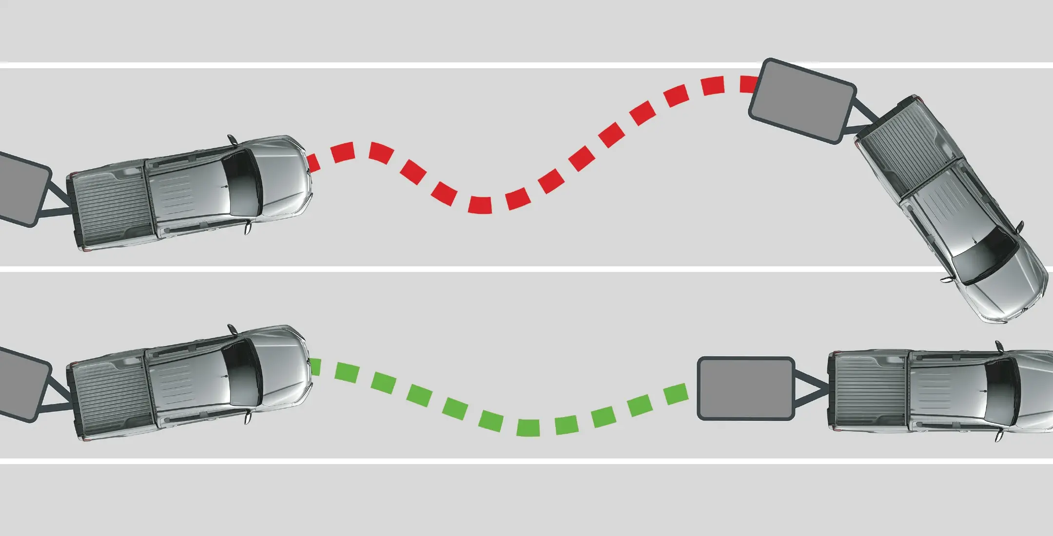 | Sistem za nadzor stabilnosti prikolice prek tipal zazna neželeno nihanje priklopnika oziroma prikolice. Ko pride do nihanja, sistem s posegom v zavore na posamičnem kolesu avtomobila umiri nihanje. |