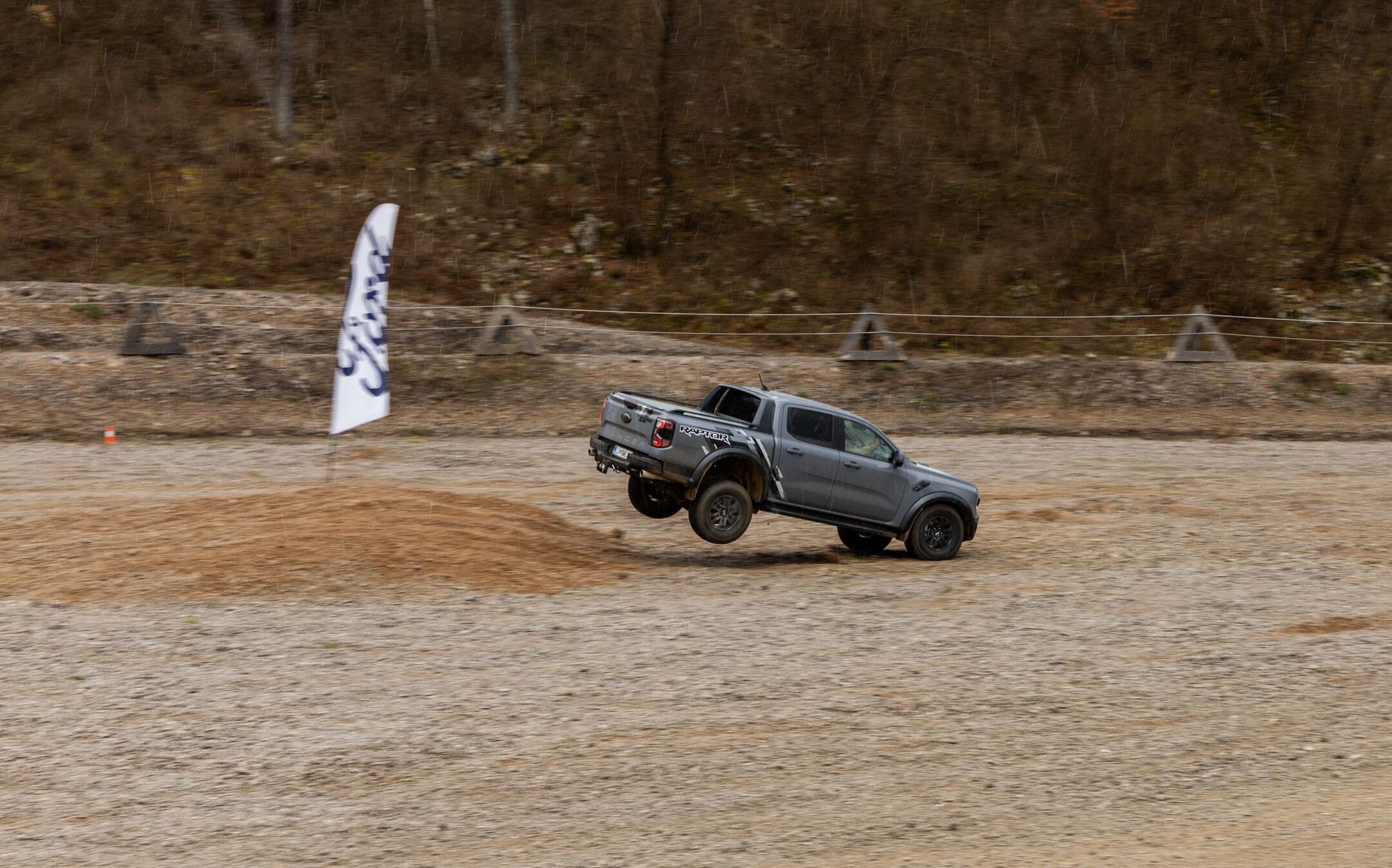 Na zahtevnem, a hkrati varnem terenskem poligonu nekdanjega vojaškega vadbišča v Parku vojaške zgodovine v Pivki so člani AMZS v družbi izkušenih inštruktorjev terenske vožnje na svojevrstnem avtomobilskem doživetju preskusili, kaj zmore športnik med klenimi terenskimi pick-upi - novi Fordov ranger raptor. Bitko za centimetre in oprijem je še dodatno zaostrilo vreme z nevihto, ki je prinesla celo sodro in sneg. A udeleženci so si bili po koncu dogodka enotni: splačalo se je priti po adrenalin in po dragoceno avtomobilsko izkušnjo!