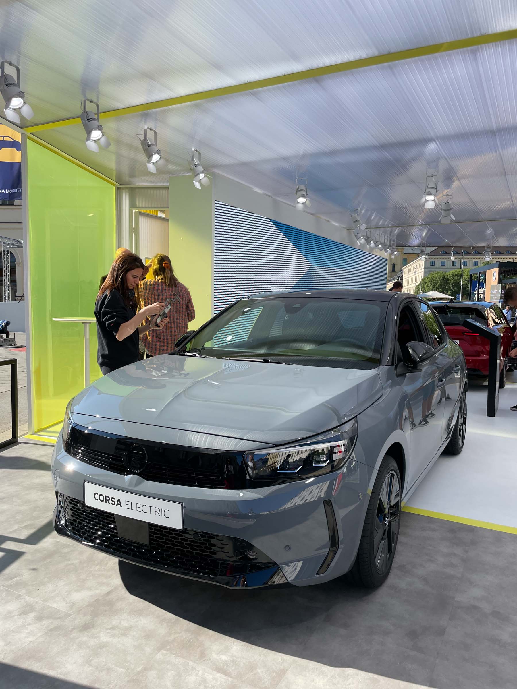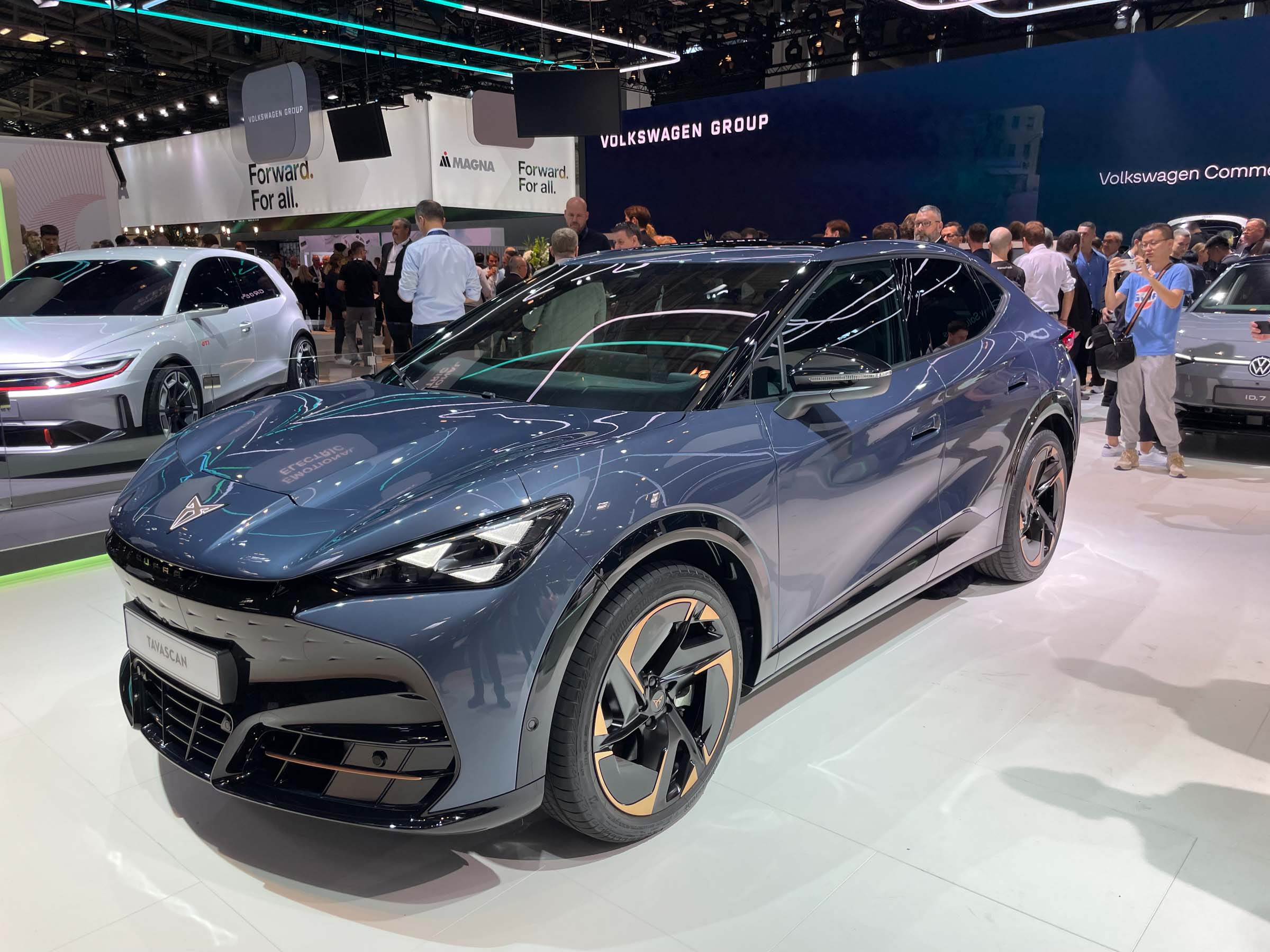 Volkswagnov razstavni prostor na münchenskem sejmišču je združil električne novosti znamk Audi, VW in Porsche, medtem ko je španska Cupra svoje novosti - prihajajočega tavascana in prototipnega športnika dark rebel - razstavila v paviljonu sredi mesta.
