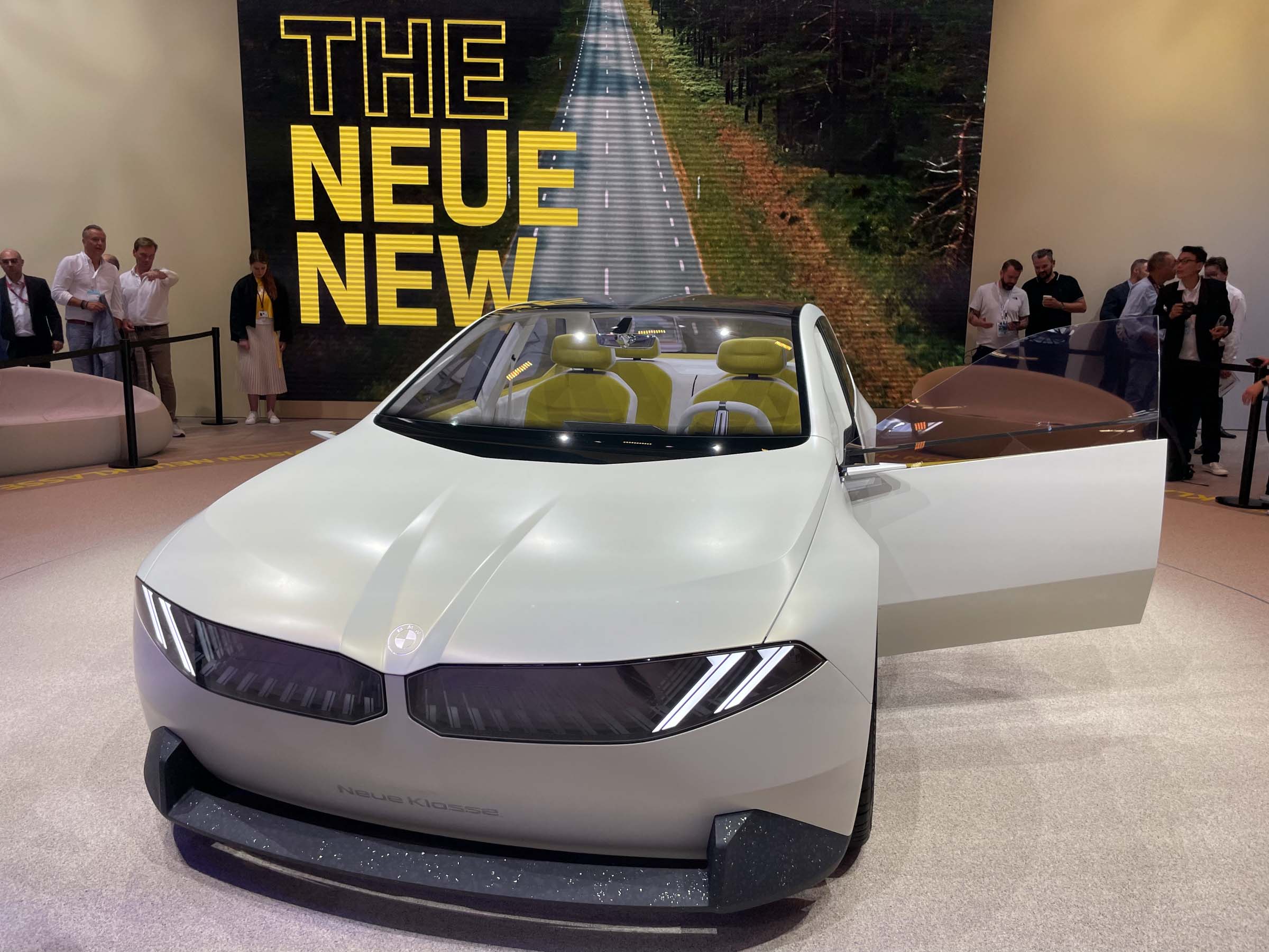 Na razstavnem prostoru BMW smo lahko rahlo v senci videli novo generacijo serije 5, a v ospredju zanimanja je bil prototip BMW vision neue klasse - osupljiv dizajnerski vpogled v novo generacijo električnih beemvejev. Razstavljeni avto je prototip električne “trojke” prihodnosti, v tem duhu pa bo BMW v prihodnjih letih predstavil šest povsem novih električnih avtov - od cestnega terenca do prestižne limuzine. Poleg nove oblike zunanjosti, ki predstavlja precejšen oblikovni preobrat, bodo imeli avti tudi povsem novo, minimalistično notranjost.