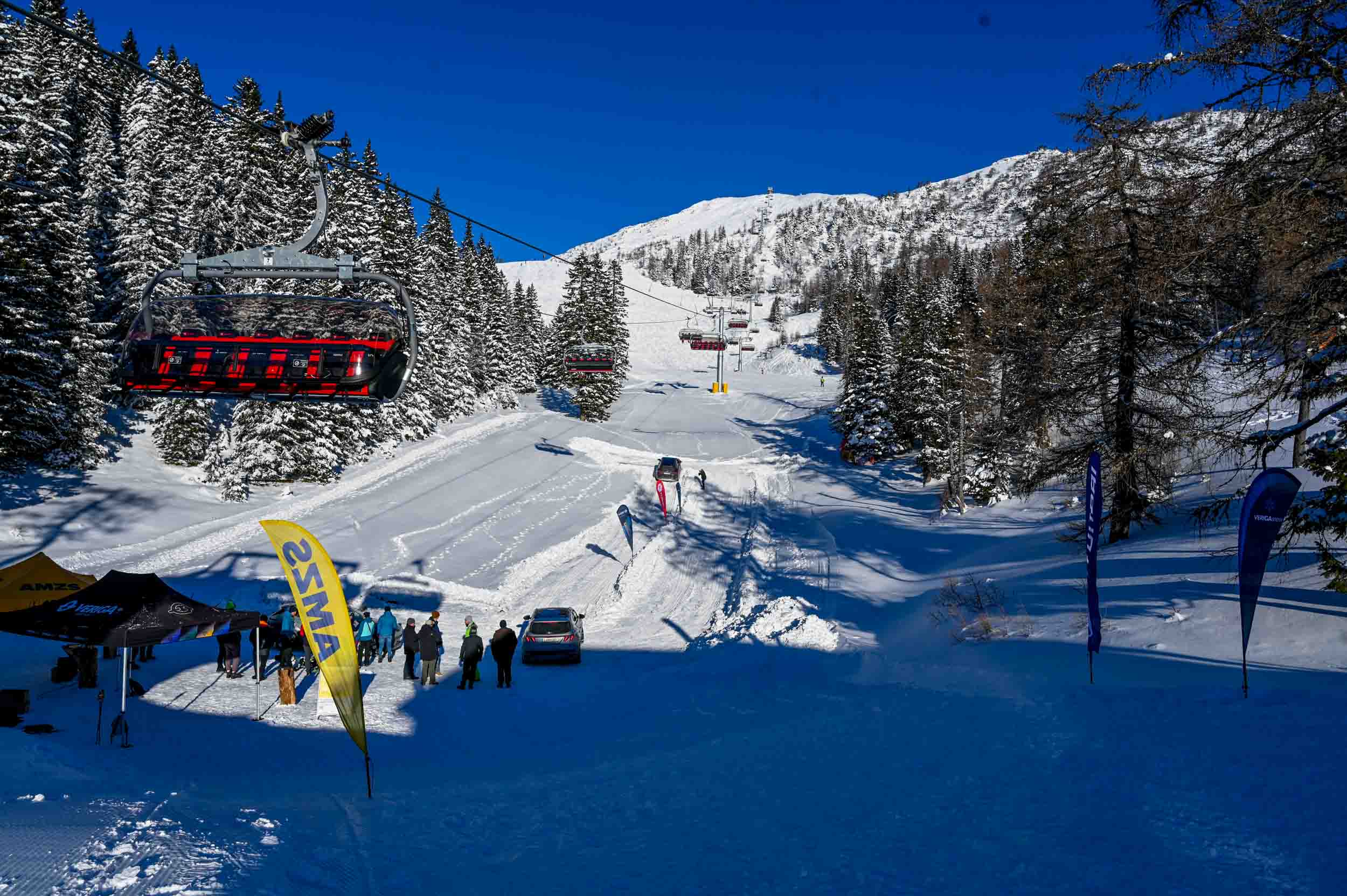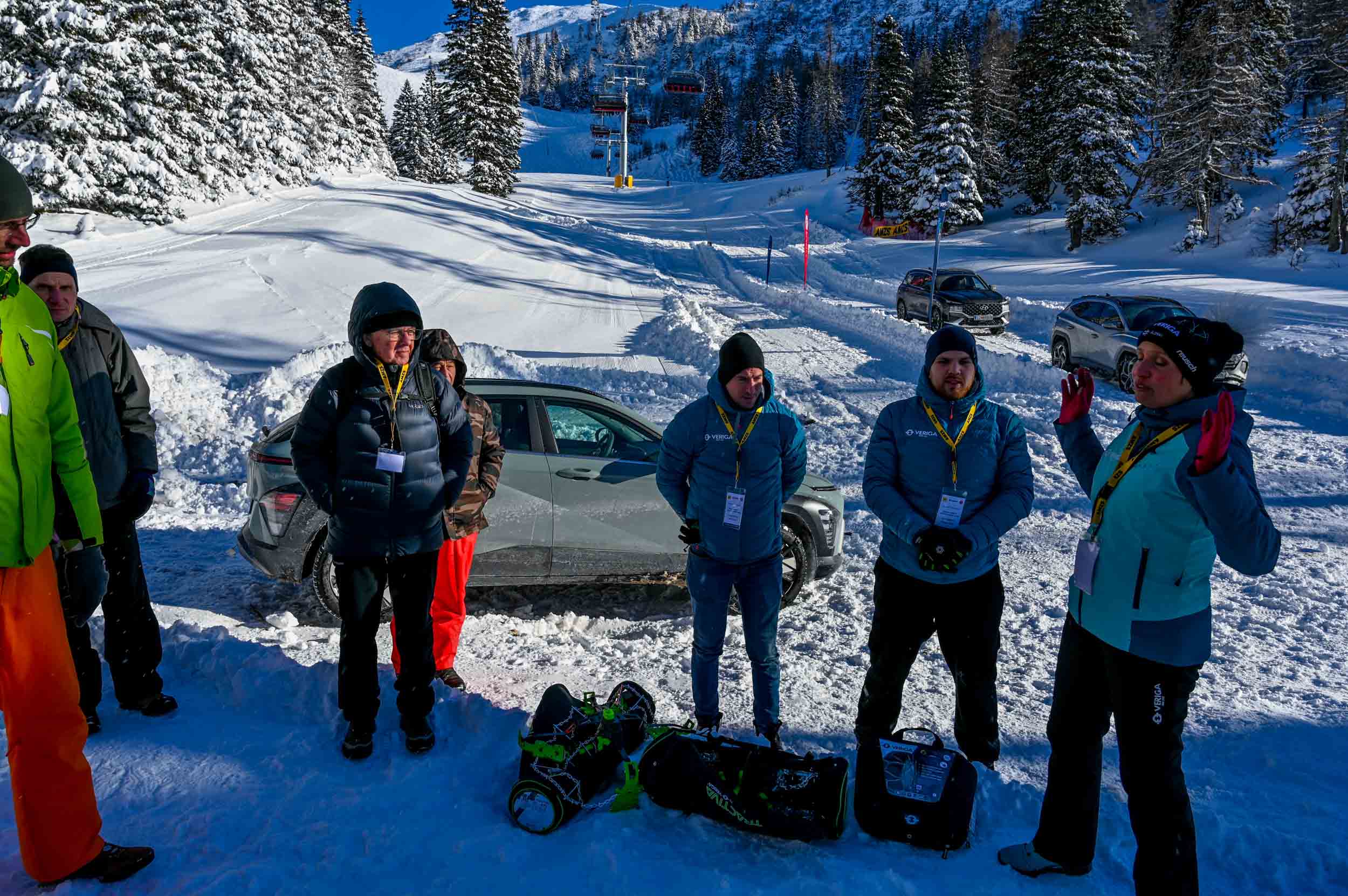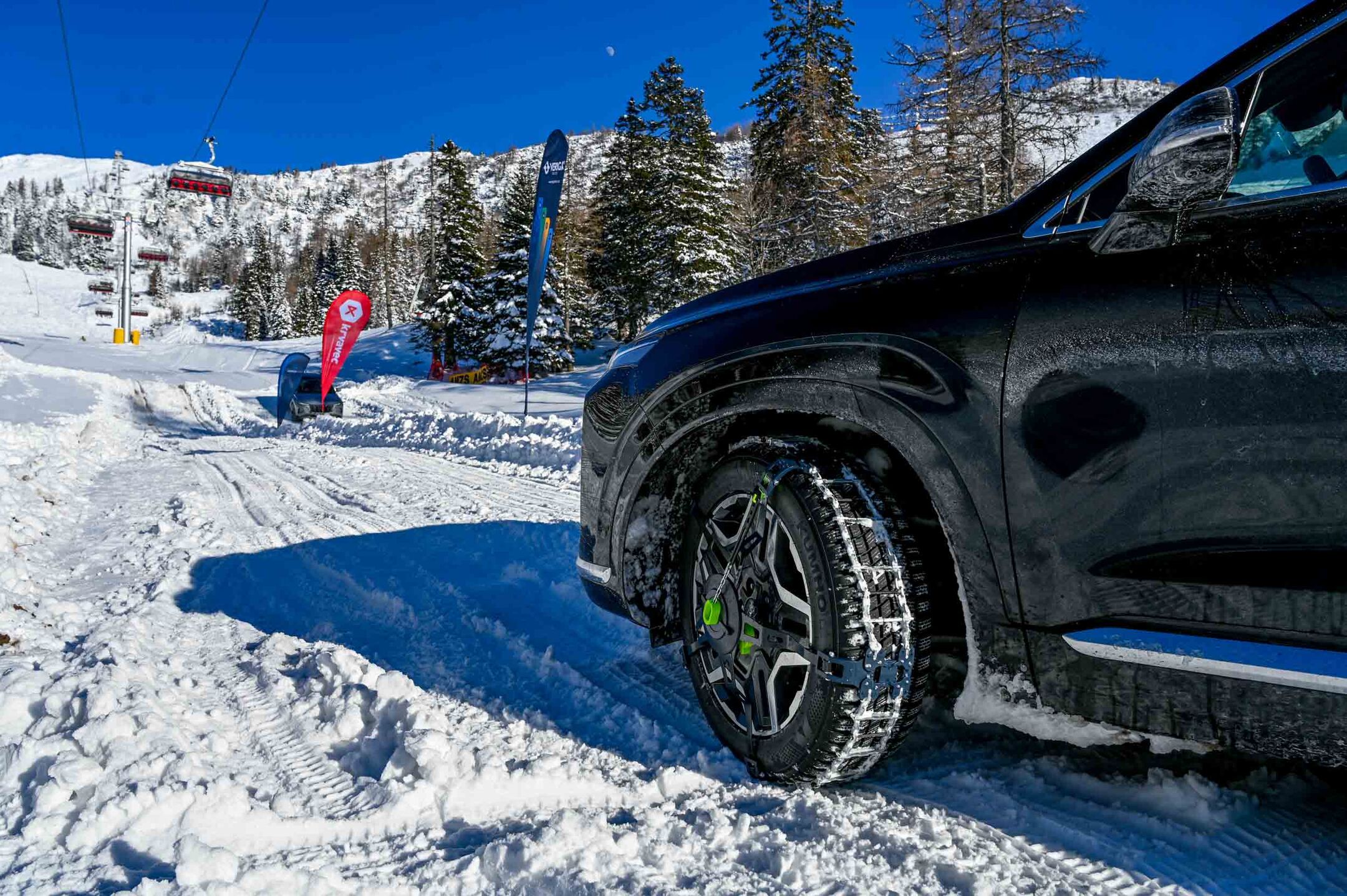 Lepšega in primernejšega dne za preskušanje inovativnih snežnih verig, kot je bila januarska sobota na Krvavcu, si ne bi mogli želeti. Zimsko sonce, temperature globoko pod ničlo, sveže zapadli sneg in visokogorsko zimsko okolje Krvavca so naslikali idilično podobo zime, kakršno smo v časih klimatskih sprememb že skoraj pozabili. Smučarjem na Krvavcu so se na najlepši letošnji zimski dan pridružili tudi navdušeni člani AMZS, ki so se na povabilo Verige Lesce in AMZS udeležili vozniške delavnice o snežnih verigah - in spoznali, da so snežne verige še vedno eden od najpomembnejših delov zimske opreme v avtomobilih. Še zlasti, če gre za verige, ki jih na avto lahko nataknemo v manj kot minuti - in ki omogočajo oprijem tudi na najzahtevnejših zasneženih cestah …