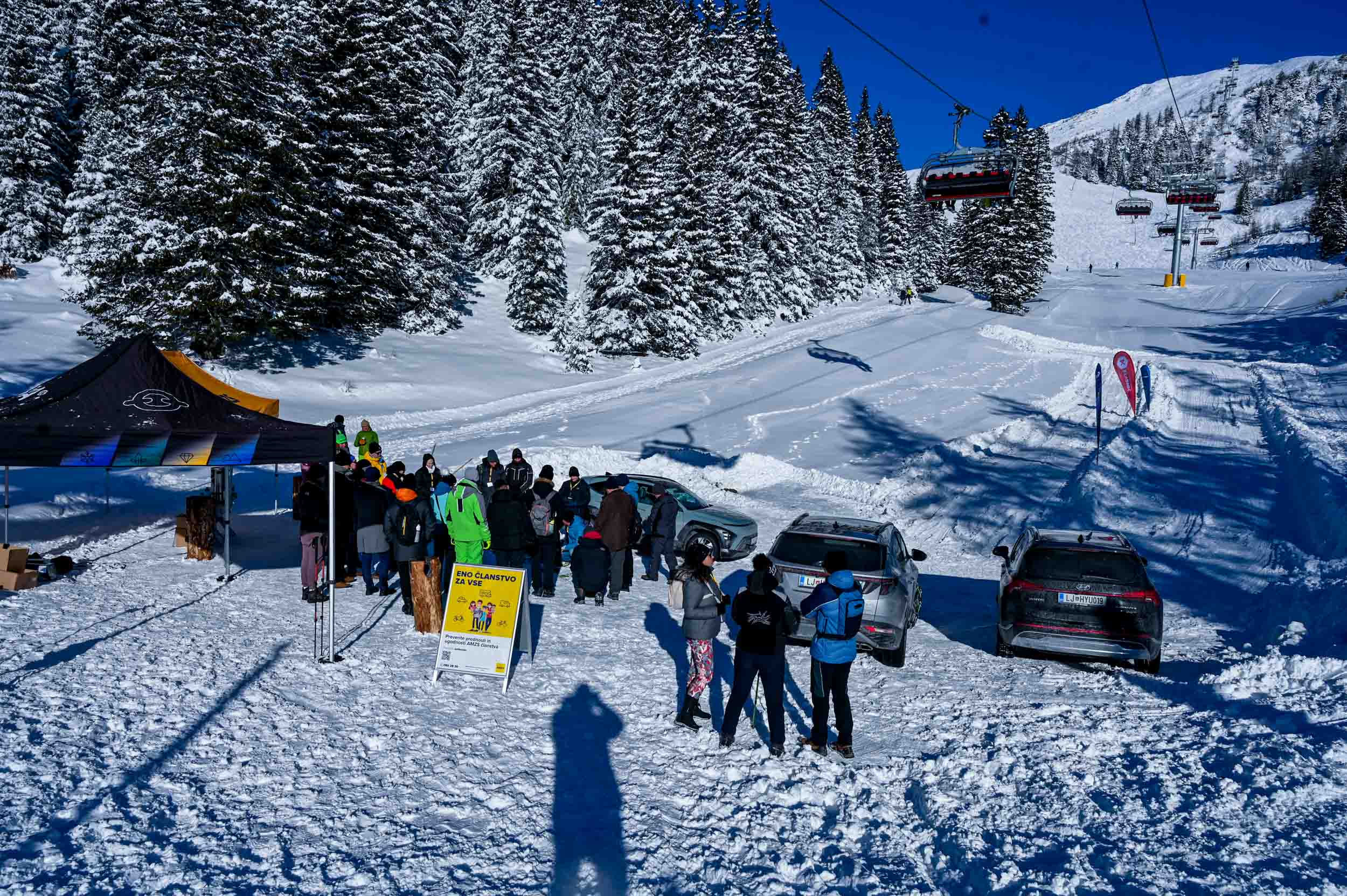Ko smo s predstavniki Verige Lesce in Rekreacijsko turističnega centra Krvavec snovali to vozniško doživetje za naše člane, smo seveda najbolj pogledovali v nebo oziroma v vremenske napovedi; na sneg in še bolj na prave snežne vozne razmere se v Sloveniji namreč ne da več računati z gotovostjo.