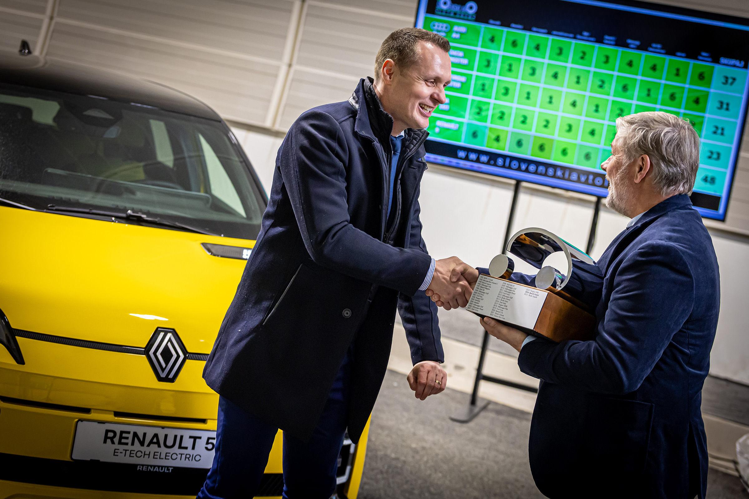 Petka je lani osvojila tudi naslov Evropskega avta leta in bila hkrati tudi najbolje prodajan električni avtomobil v Renaultovi ponudbi električnih avtomobilov na slovenskem trgu. Slovensko zmago je renault 5 e-tech electric osvojil prepričljivo: v finale je vstopil z največ točkami bralcev, gledalcev, poslušalcev in sledilcev sodelujočih medijev, zmago pa je potrdil tudi po glasovanju avtomobilskih novinarjev. Drugo mesto je osvojil audi A5, na tretje mesto se je uvrstil dacia bigster, četrto in peto mesto letošnjega izbora pa sta po seštevku točk osvojila še dva električna korejska avtomobila, kia EV3 in hyundai inster.