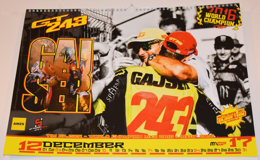 Da ne boste v 2017 zamudili prav nobene dirke našega svetovnega prvaka, si jih čim prej označite na koledarju. Najbolje kar na Timovem, ki vam je, poleg njegovih drugih promocijskih izdelkov, kot so majice, kapa, skodelica, zapestnica, brisača in vezalke, na voljo v enotah AMZS.