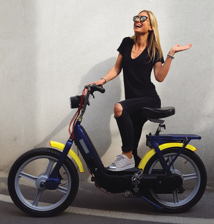 Vožnja z mopedi, ki ne presegajo 25 km/h, je dovoljena po kolesarskih površinah (kolesarski pas, kolesarska steza, kolesarska pot). Na območjih brez kolesarskih poti je dovoljena vožnja ob desnem robu vozišča v smeri vožnje. Vožnja v območjih za pešce je prepovedana.
