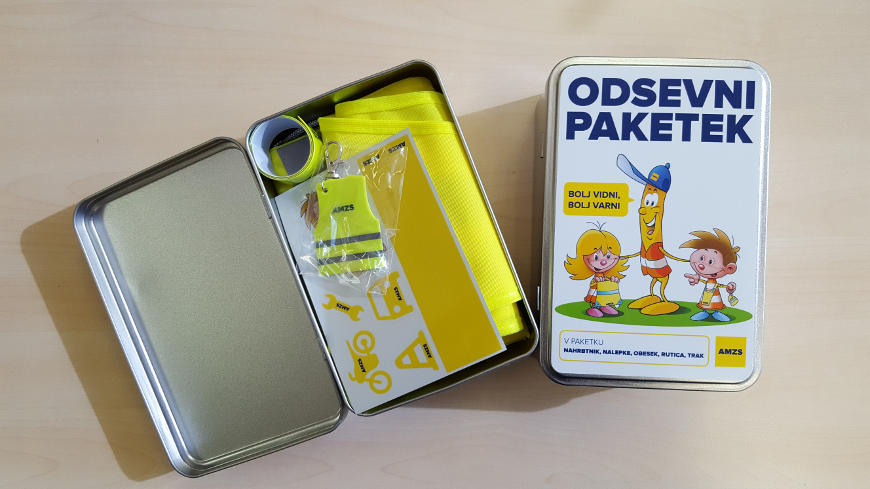 Da bi bili otroci na cesti še bolj varni, pa so v AMZS pripravili tudi odsevni paketek, ki vsebuje: