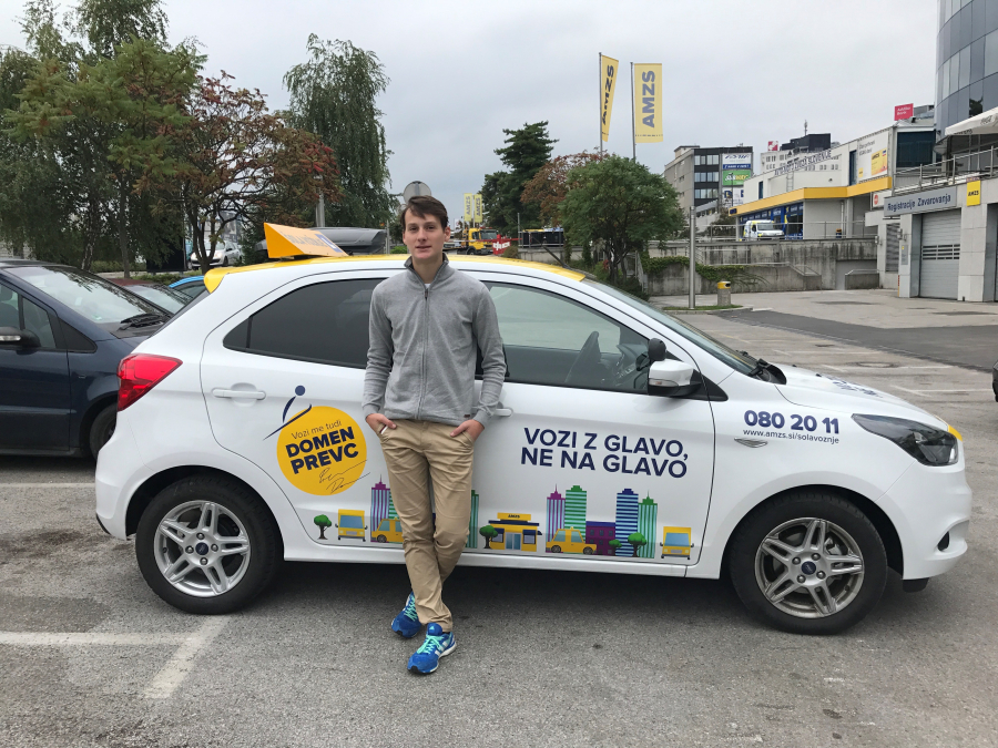 Če boste na cesti srečali novi Ford KA+ z napisom Vozi me tudi Domen Prevc, potem je kar nekaj možnosti, da boste v varčnem Fordovem malčku, ki preseneča s svojo prostornostjo, zagledali našega skakalnega junaka. Domen, ki sicer pred novo sezono pridno trenira, je namreč že začel z urami vožnje, njegov mentor pri tem podvigu pa je vodja AMZS Šole vožnje in AMZS inštruktor varne vožnje Manuel Pungertnik, ki pravi, da je Domen tudi v avtu takšen kot na skakalnih smučeh – vrhunski. Pungertnik je ob tem še dejal, da se bodo v AMZS Šoli vožnje potrudili, da bo Domen na poti do vozniškega dovoljenja pridobil čim več neprecenljivih izkušenj, ki mu bodo kot vozniku pomagale, da bodo njegove poti varne in polne lepih doživetij. Pomoč na cesti in številne druge prednosti, ki jih prinaša AMZS članstvo, pa bo Domnu zagotavljalo članstvo Start, namenjeno mladim do 26. leta.