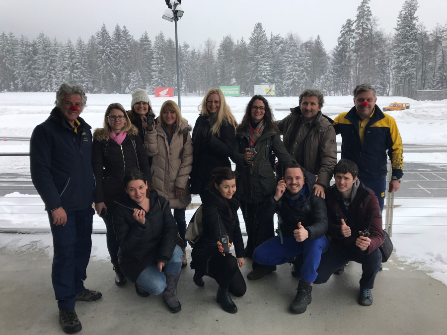 Rdeči noski - klovni zdravniki so se nam danes, v zimski idili AMZS Centra varne vožnje na Vranskem, pridružili na tečaju varne vožnje, ki sta ga vodila izkušena AMZS inštruktorja varne vožnje Brane Legan in Vojko Safran. In nas še enkrat več navdušili!