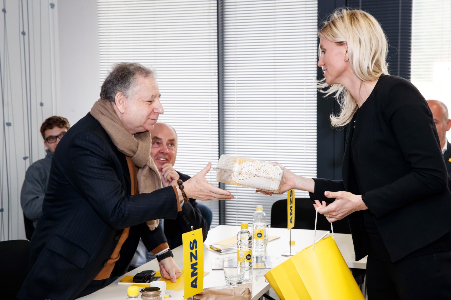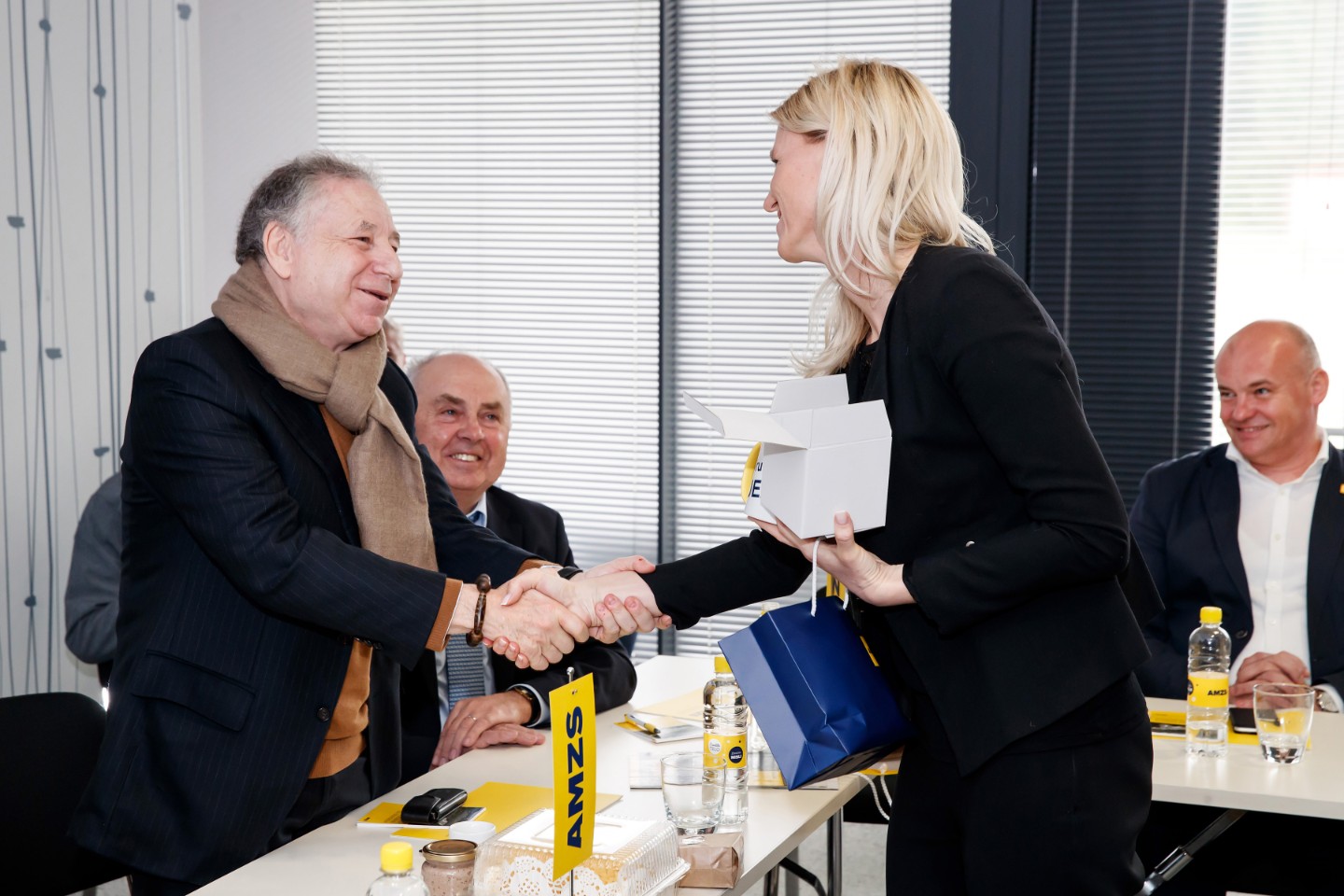 Generalni sekretar Avto-moto zveze Slovenije France Kmetič, vodja področja varna mobilnost mag. Jure Kostanjšek in direktorica AMZS, d. d., mag. Lucija Sajevec so predsedniku FIA, katere članica je Avto-moto zveza Slovenije, predstavili aktivnosti, ki jih AMZS izvaja za izboljšanje prometne varnosti. Še zlasti so izpostavili aktualne kampanje in projekte, med drugim podporo AMZS globalni kampanji FIA 3500 življenj (#3500LIVES) in kampanjo FIA Regija I Ne hiti, ohrani življenja (#NeHiti, #SlowDown), izbor Najboljši za volanom, v katerem AMZS izbira najboljšega mladega voznika ali voznico Slovenije, projekt BRAVE, ki z raziskavami in znanstvenimi prispevki na področju avtonomne vožnje raziskuje različne vidike avtonomne vožnje in jo skuša približati uporabnikom, ter aktivnosti in programe AMZS Centra varne vožnje na Vranskem, ki je eden najsodobnejših centrov varne vožnje v tem delu Evrope.