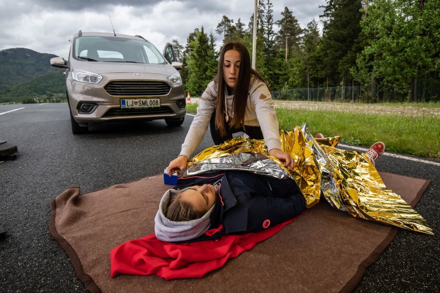 - simulacija prometne nesreče: ukrepanje v prometni nesreči in nudenje prve pomoči