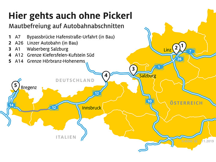 Nekateri odseki avstrijskih avtocest od 15. 12. 2019 ne spadajo več v vinjetni sistem: